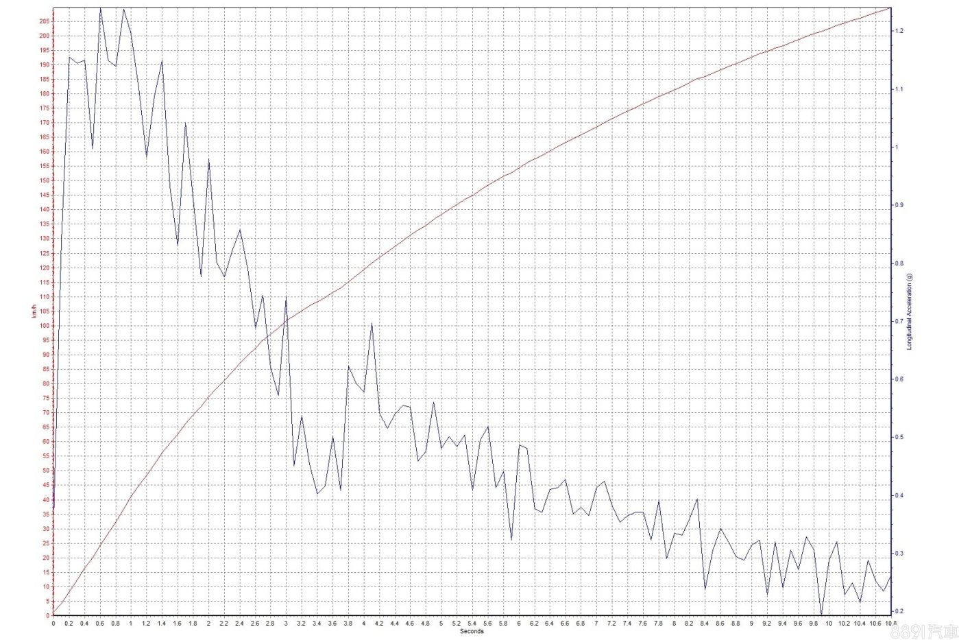 造成打滑的原因莫過於油電系統全輸出的142.8kgm扭力太猛,讓腳下前275/35R21、後315/30R21的米其林Pilot Sport Cup 2也抓不住,重煞幾次讓胎溫熱起來打滑狀況才趨緩,最終實測零百加速最快2.93秒,繳出與原廠2.9秒一致的優異成績,除了V8引擎那深不見底的延伸性,電動馬達也填補了換檔、引擎轉速未達甜蜜點的空窗期輸出,衝刺過程既暴力又順暢,0~400m加速繳出10.8秒、通過速度209.68km/h的超狂成績,瞬間最大G值還達到1.23G,沒做好準備真的會扭到脖子。