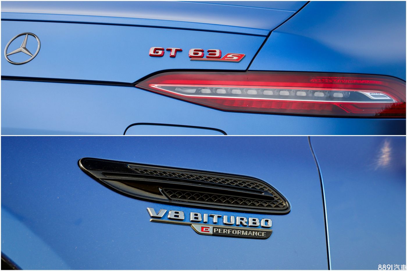 帶紅色元素的車型銘牌代表著「帶電」的特殊身份,另外在前葉子板上除了有代表V8雙渦輪的V8 Biturbo字樣,下方則加入E Performance字樣,代表著賓士AMG最新的插電式油電動力,這些元素在後來問世的C63 S E Performance也能見到,就車廠習慣來說,油電動力通常都是用藍色來表示節能,但賓士這套系統完全是為了性能而生,當然是用熱血的紅色!