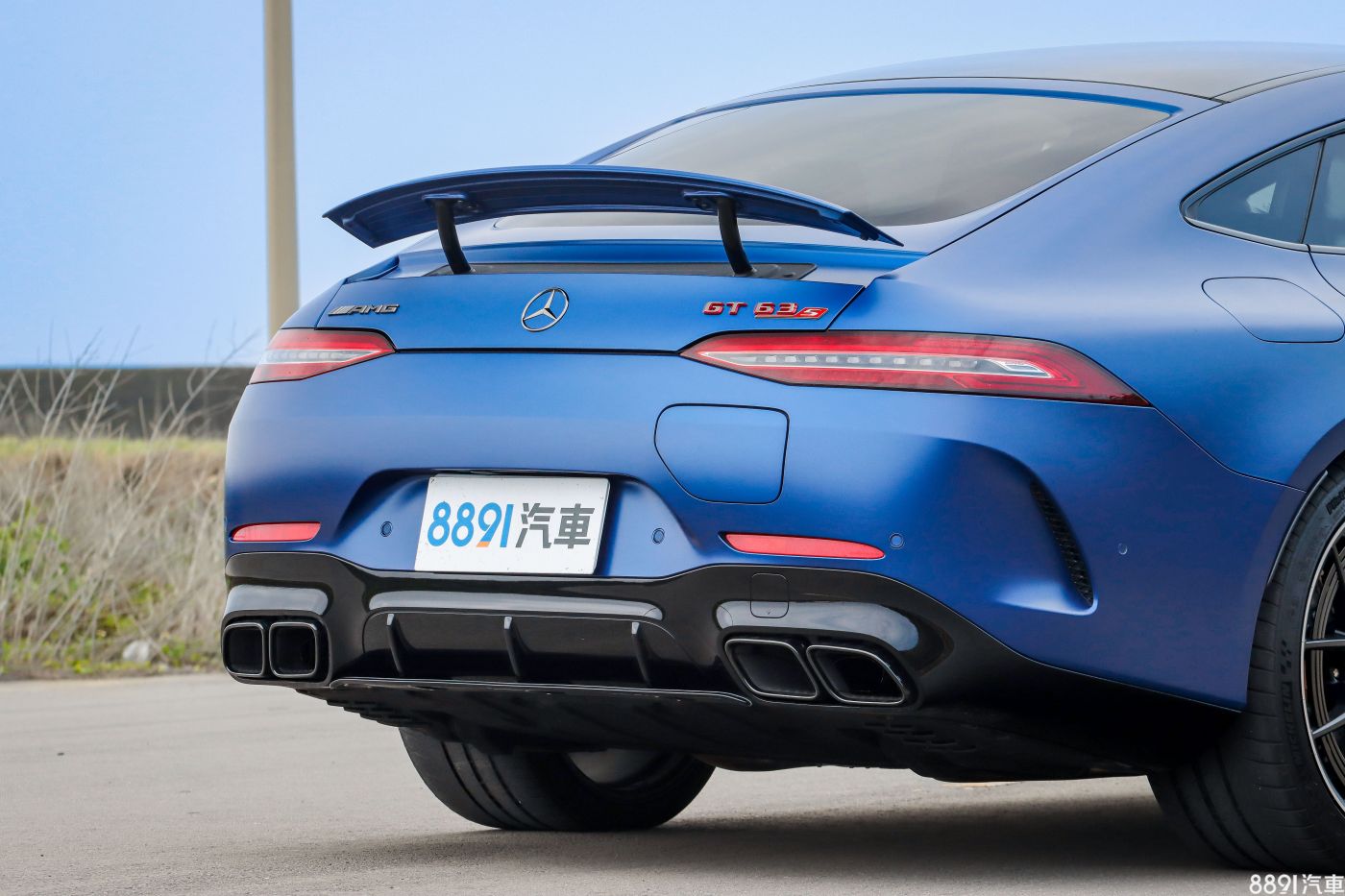 GT 63 S E Performance出廠標配的是試駕車上的電動尾翼,有多段角度可調,並會在時速100km/h以上自動升起,另外也提供可免費加選的AMG空力套件,會換成固定式尾翼、樣貌更張狂的後下擾流等空力配備。下方矩形四出排氣管是AMG 63系列的招牌特色,聲浪飽滿低沈,標準的賓士V8滾水聲,閥門全開退檔也會發出陣陣爆燃聲,聲光效果十足。