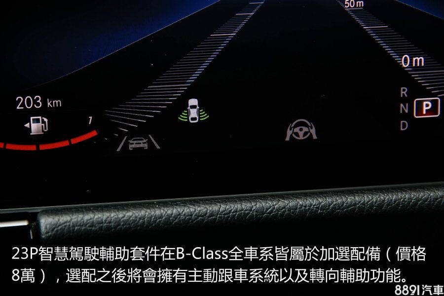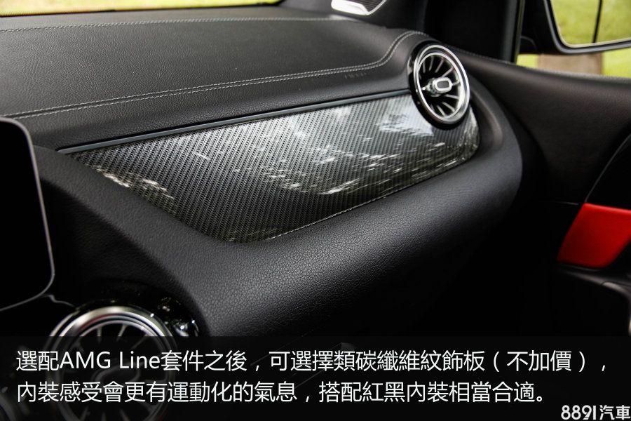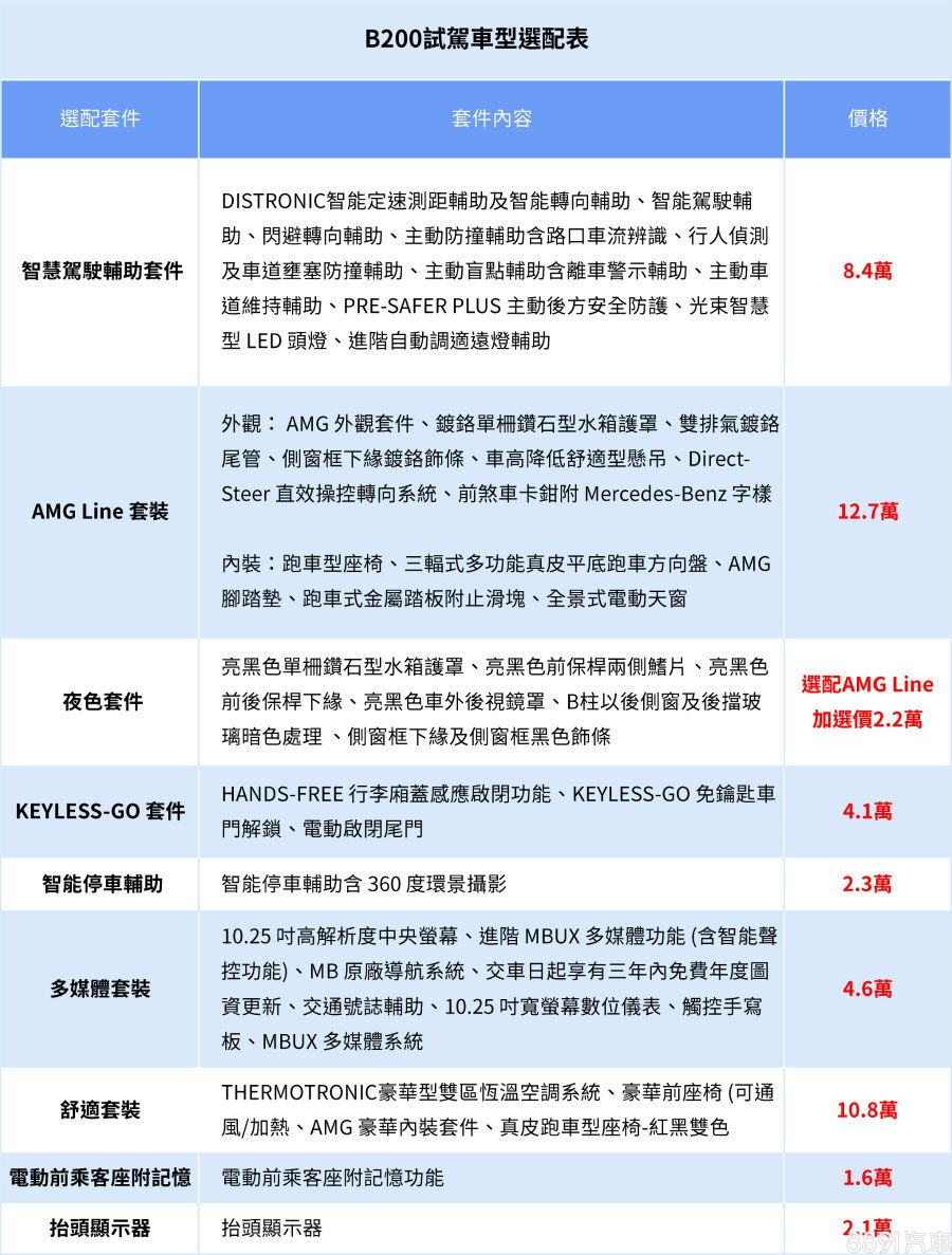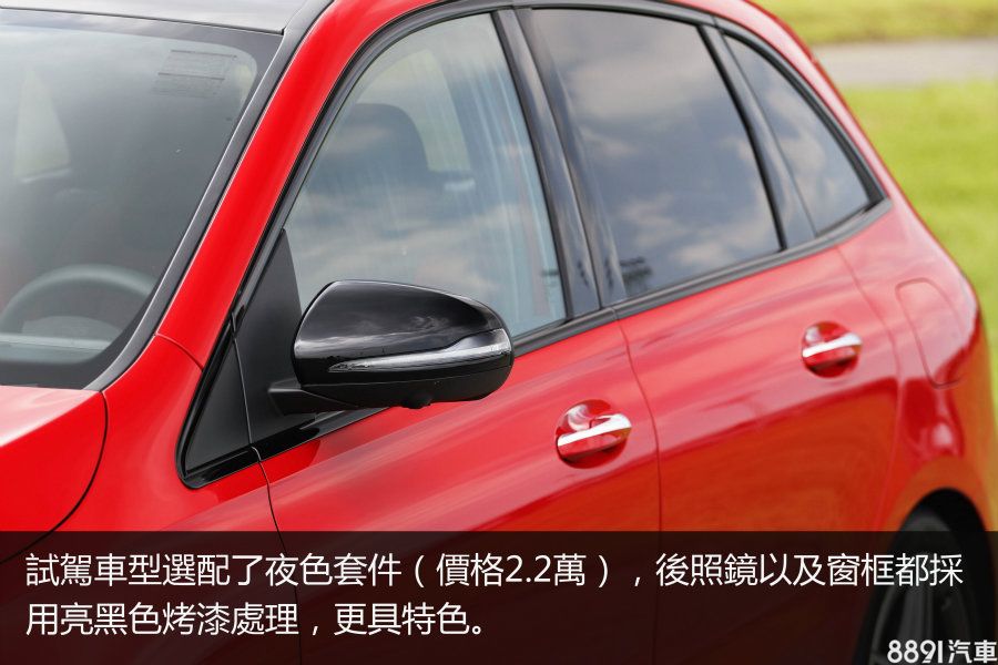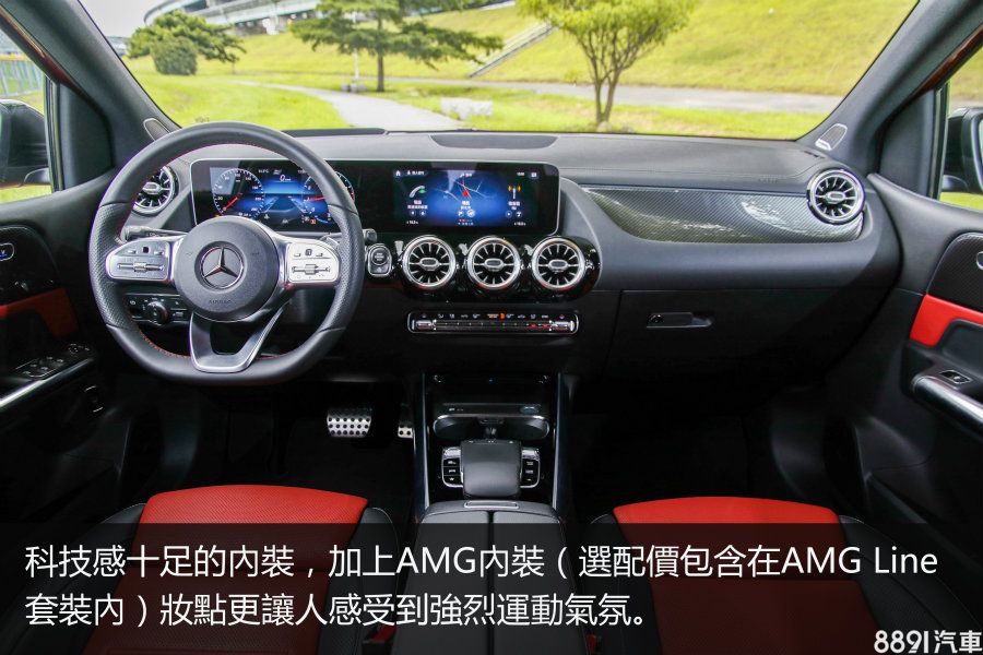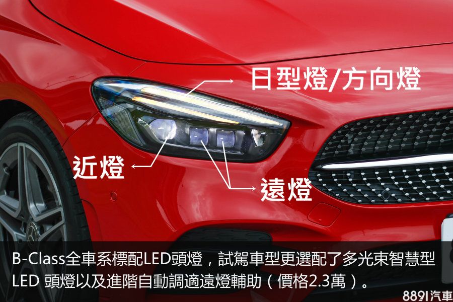 此次試駕的B200添加了許多選配套件,在內外觀配備中皆與標配的B-Class有許多不同,特別是AMG Line套裝讓B-Class的樣貌更運動化,多媒體套裝以及智能駕駛輔助套件也讓這輛車的科技感更豐富一些。