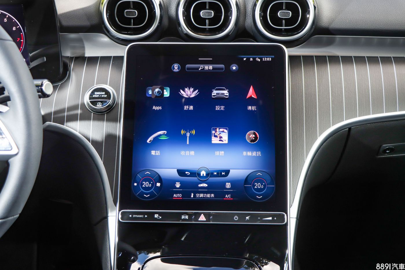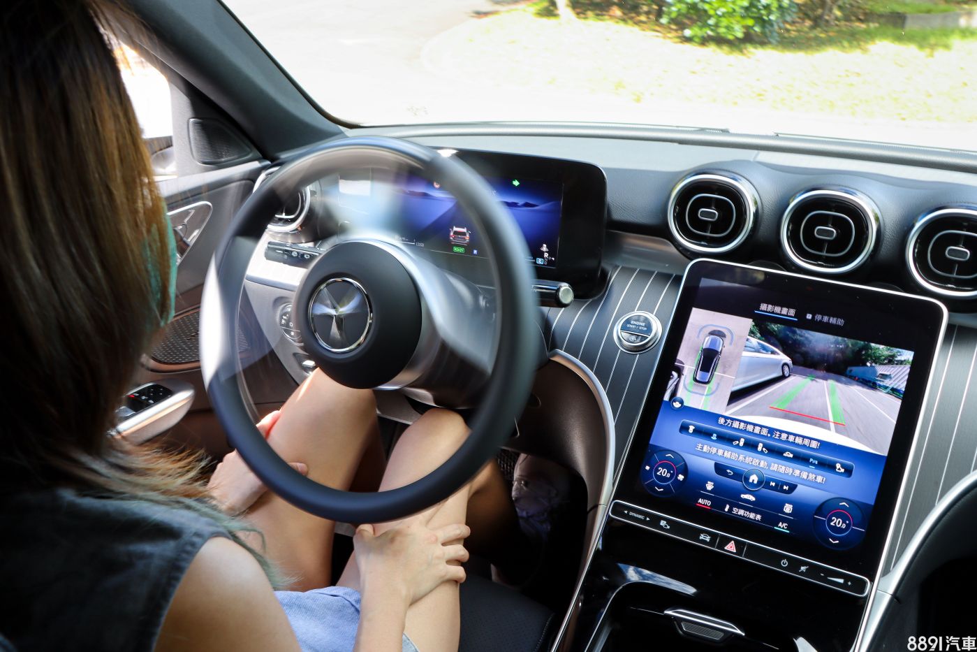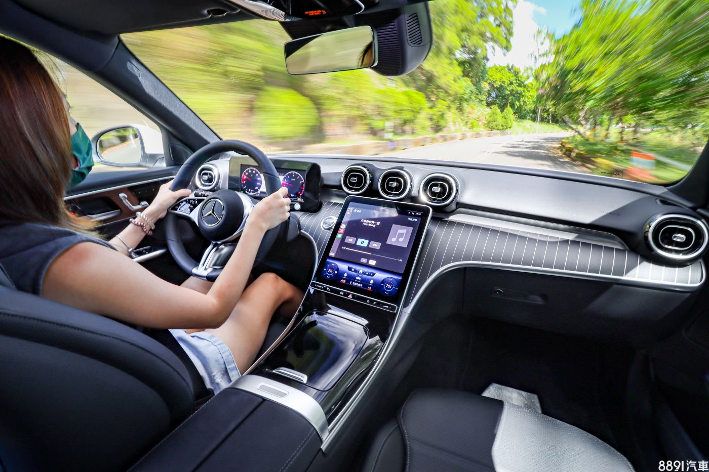 幾乎可以由此進行所有車內操作的11.9吋觸控式MBUX多媒體系統,不論是觸控回饋、畫質、反應速度都一流,下方還是有如切換駕駛模式、開啟環景與停車輔助等的觸控與實體按鍵混合之設置。但對於車輛行進中想調整空調也只能透過此介面這部分,覺得還是「實體摸骨」比較習慣,能提供更完整道路交通資訊的擴增實境導航顯示功能僅C 300標配,這次無法試到有點可惜。