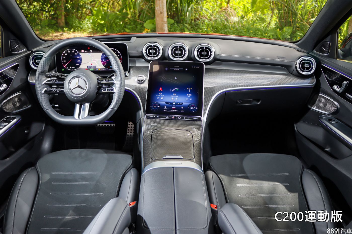 擁有AMG Line套件的C 200運動版,透過金屬編織飾板、像「蜻蜓展翅」的專屬方向盤、金屬踏板等,為車室追加些許動感氣息,全系標配的Keyless、雙區恆溫空調(此車選配四區恆溫空調、5.1萬)、11.9吋觸控式MBUX多媒體系統、指紋辨識功能等,符合此級距該有的配備水準。