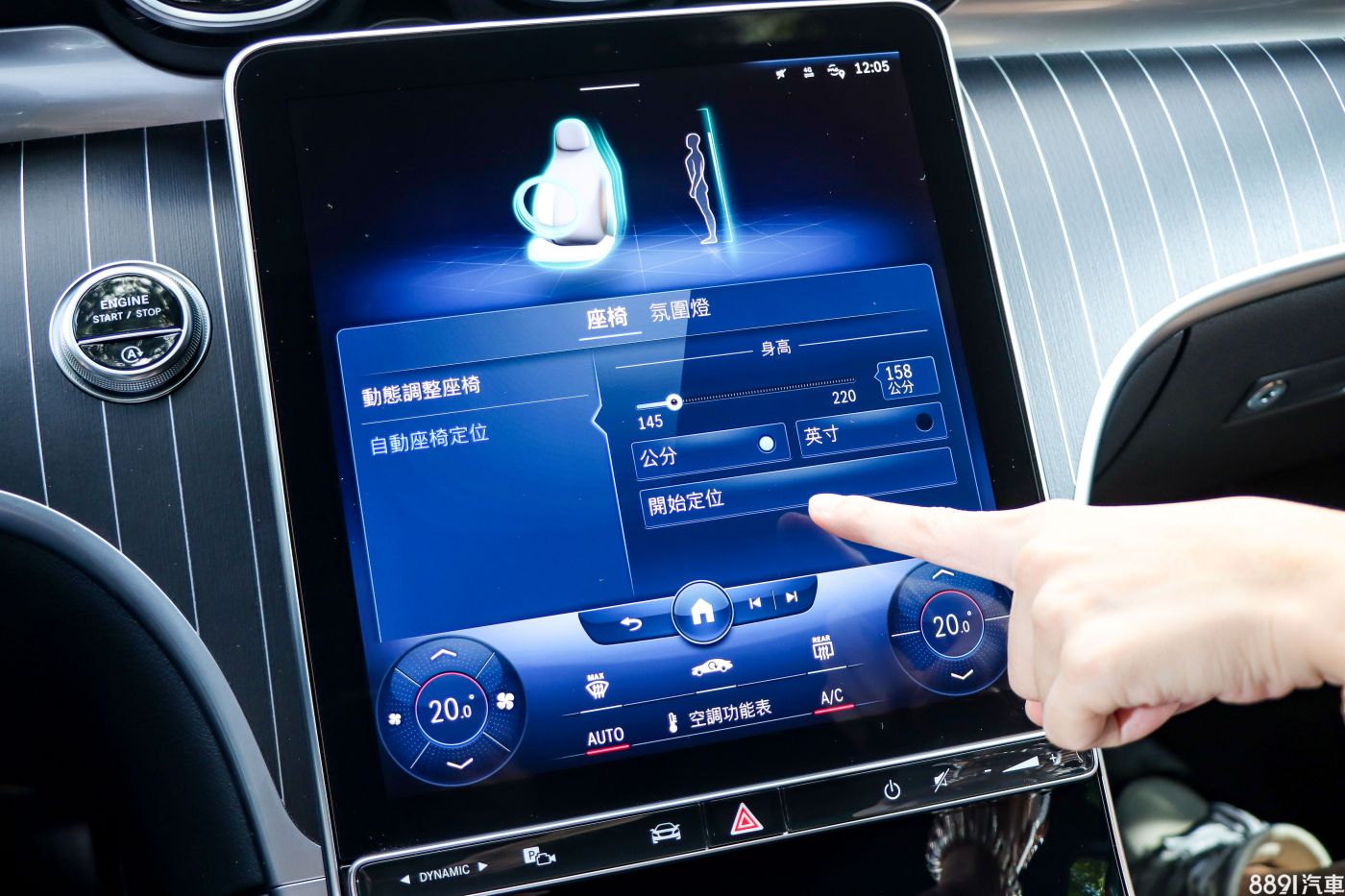 我還記得,大改款S-Class推出之時,我對MBUX內建的自動調整駕駛座功能很有興趣,新C-Class也有!只要選擇舒適-座椅再輸入身高,駕駛座就能自動幫你將座椅前後、高度、方向盤位置「辦到好」,我們用身高不同的人測試,系統調整十分到位,不過大家共同嘴的一點就是:椅背傾斜幅度略大。