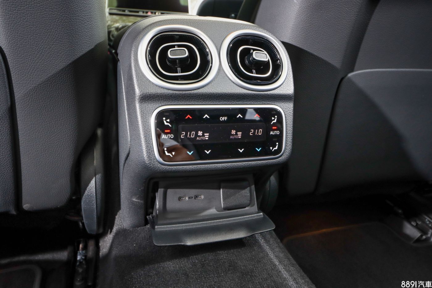 C 200運動版選配四區恆溫空調,所以有後座控制面板,若無則為小型置物空間配置。