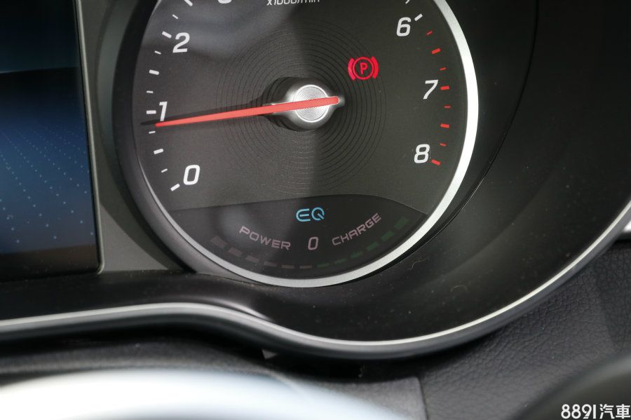 轉速錶下有個EQ系統的圖示,行駛中可以即時觀察充放電情況,Power燈亮起就代表馬達在提供額外推力,如果是Charge則表示正在將多餘動能回收至48V電力系統中。