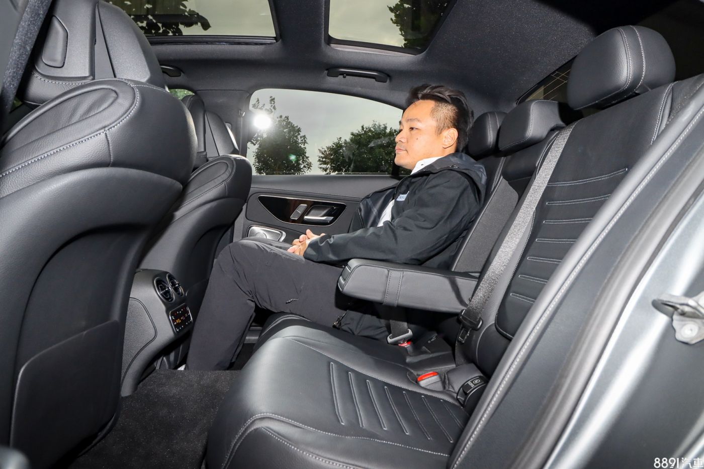 在車長增加65mm(4793mm)、軸距成長25mm(2865mm)之下,新一代C-Class的車室空間更加寬敞,椅面長度與前座一樣有出色表現,25.9cm的膝部空間對比車格大一號的E-Class歷史數據26.5cm也僅有不到1cm的差距,整體空間感相當不錯,唯有中央地板隆起較高,這是傳動軸的所需空間,難以避免。