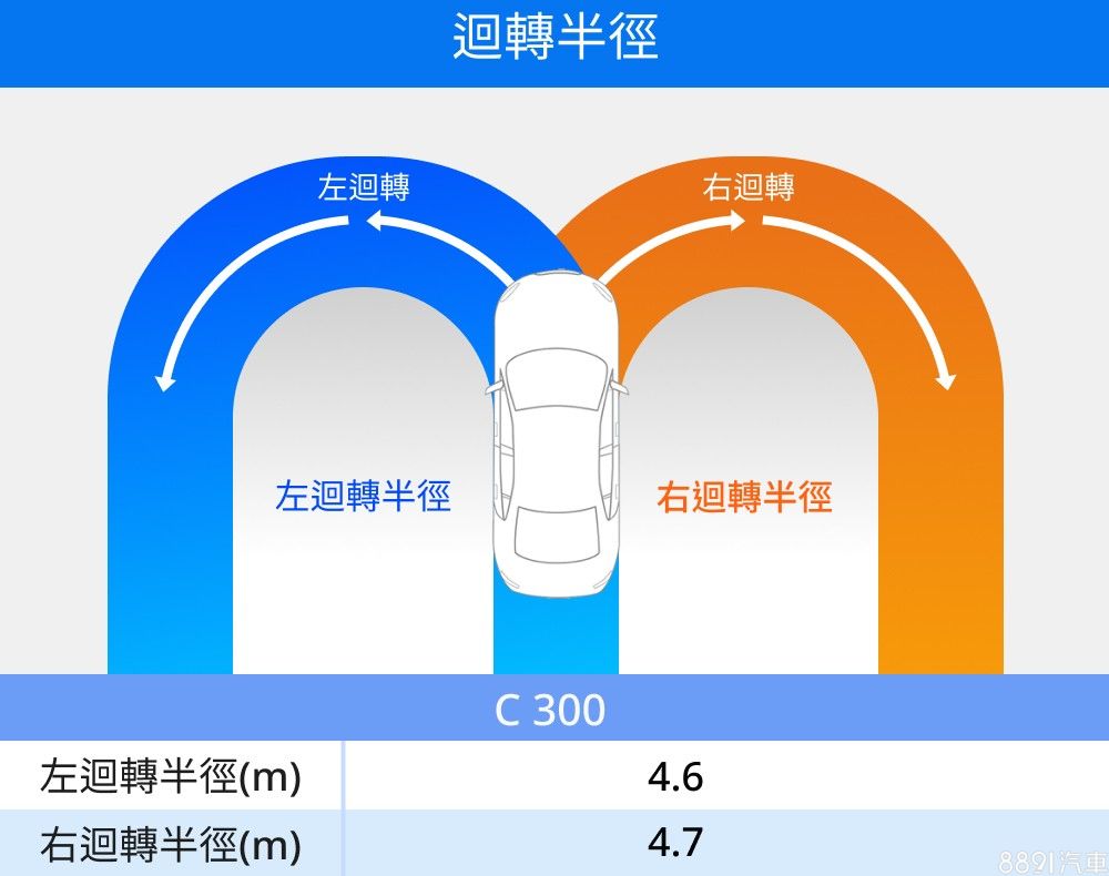 這輛C 300並沒有選配後輪轉向系統(選配價格5.8萬),不過實測約4.6m的迴轉半徑已屬出色,若參考原廠給出的數據,選配後輪轉向後可再減少約20cm的迴轉半徑,靈活程度堪比都會小車。