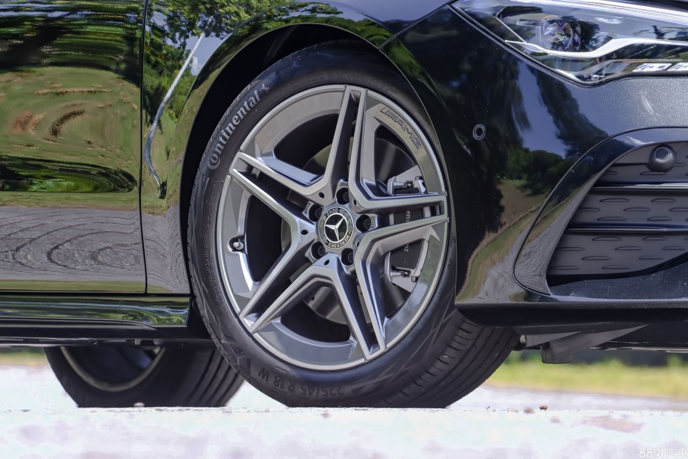 18吋鋁圈是賓士常見的「五芒星」式樣,配胎為225/45R18尺寸的馬牌EcoContact 6舒適胎,胎噪安靜,舒適性確實不錯,但畢竟胎款非運動取向,抓地力表現較為一般。