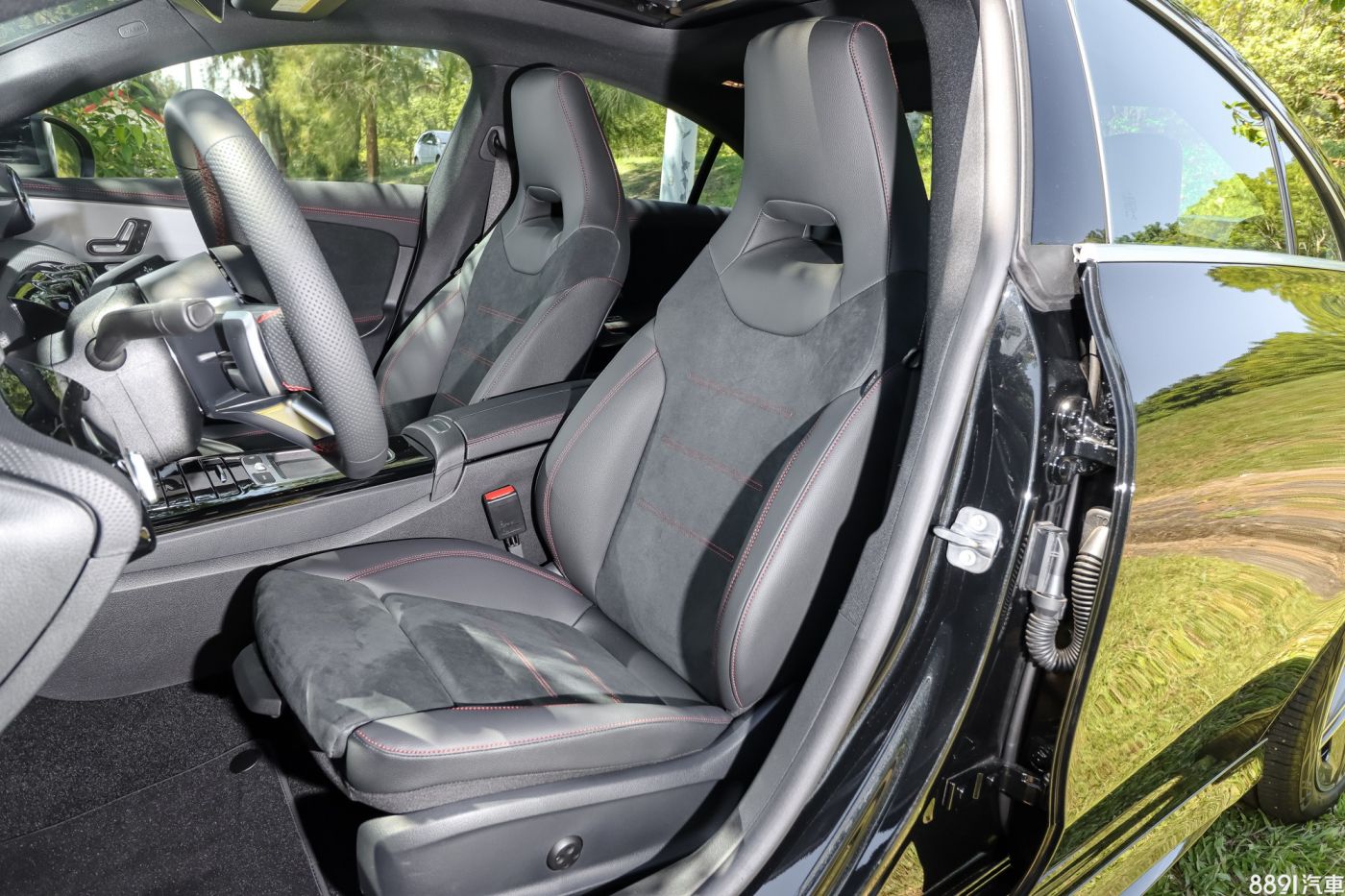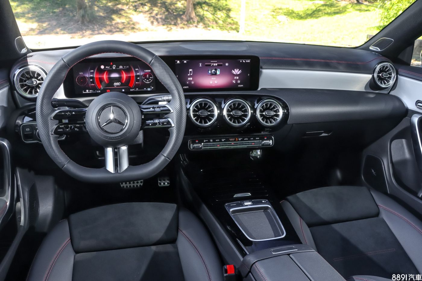 雙前座皆為電動調整,附兩組記憶功能,雖然座椅造型很有跑格,但實際乘坐起來還是舒適性為主,輕柔服貼身軀,腰部不會過分夾緊,如果想要多點身體固定效果,選配AMG Line椅面會混搭麂皮材質,多點止滑效果,但座椅整體造型與標配款是相同的。