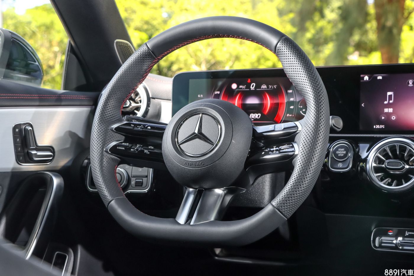 試駕車因選配AMG Line的關係,多出Nappa真皮平底跑車方向盤,類似「蜻蜓」般的設計,造型特別握感也佳。左、右兩側按鍵分別可控制數位儀錶與中央螢幕,開車時兩手不離方向盤,就能操控大部分功能,按壓還會有震動回饋,直覺又順手。