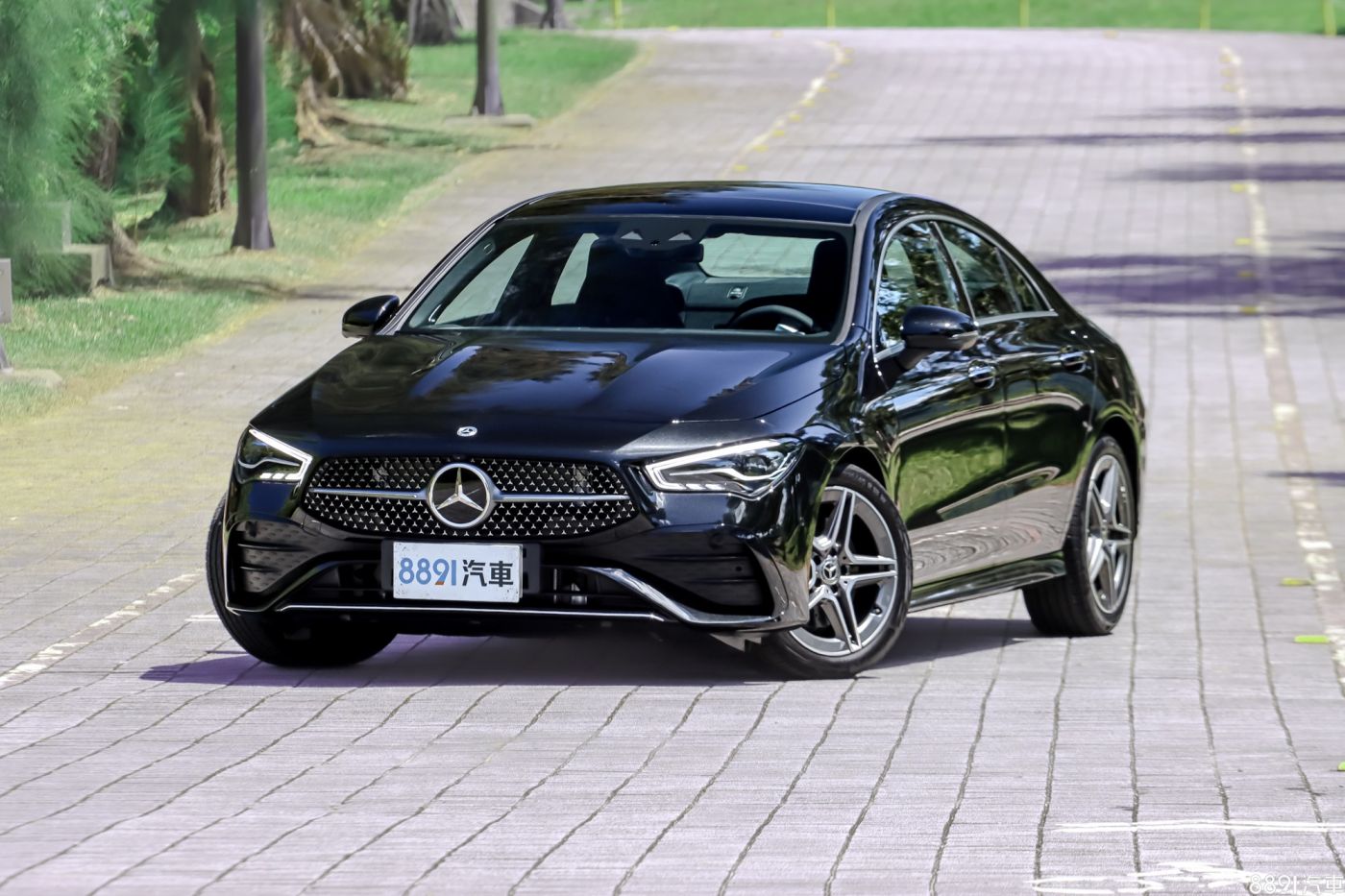 小改款CLA外觀著重細節改變,採用全新式樣的LED頭尾燈組,保桿細節也有更動,入門CLA 200版本配置Progressive外觀套件,是比較素雅的風格,試駕車加選9.8萬元的AMG Line套件,有星芒水箱護罩,專屬前後保桿、側裙造型,還有18吋AMG輪圈,看起來更運動化一些。