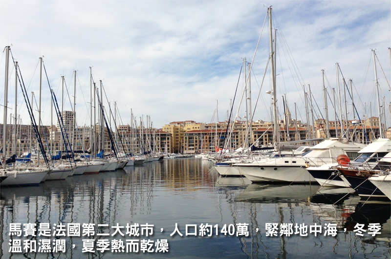 馬賽是法國第二大城市,人口約140萬,緊鄰地中海,冬季溫和濕潤,夏季熱而乾燥,所以也是歐洲當地的『避寒』勝地;馬賽分為舊港與新港區,主要的商業區集中在舊港區規劃的遊艇碼頭周圍。