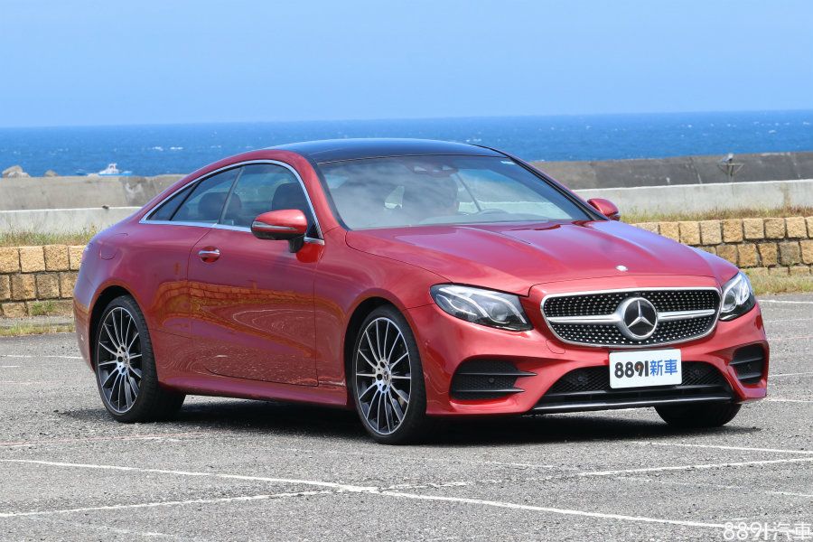 E400 Coupe引擎蓋有兩道明顯的肌理線條,招牌的單柵式鑽石型水箱罩,且本身就標配AMG套件,加上選配的風信子紅車色,替優雅路線的外觀有效加分,此外,因此代E-Class Coupe不再以C-Class底盤為基礎,尺碼比上一代放大不少,車內空間增加,外型的比例也更和諧、大器。