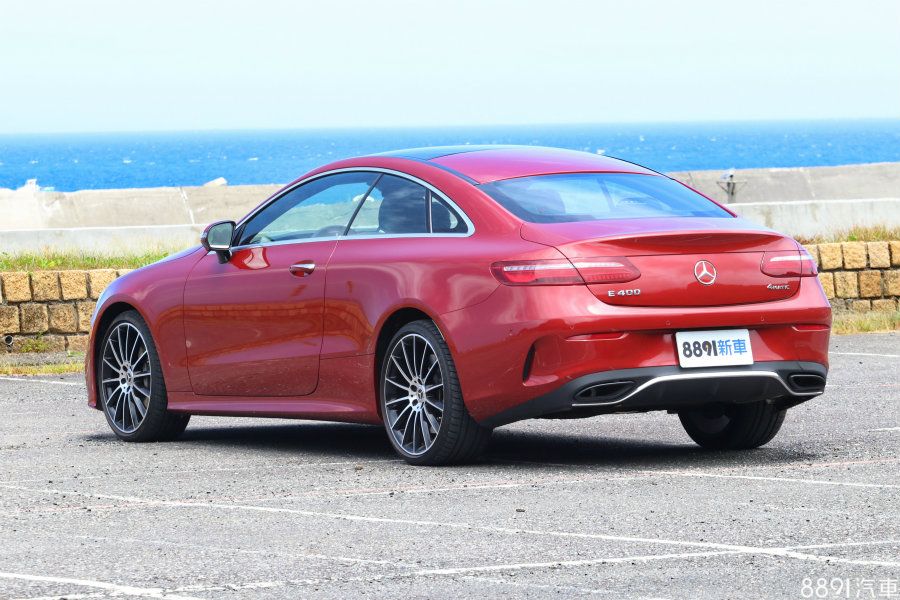 原廠稱為新月造型的C柱式外觀特色之一,為車輛增加辨識度,而保桿下緣的設計較繁複,比起配置AMG套件的E400 Coupe有較濃烈的性能味,此外,因試駕車和實際販售規格有些不同,若選配運動外觀套件,還會有一片碳纖維材質的鴨尾式尾翼,運動感的營造會更到位。