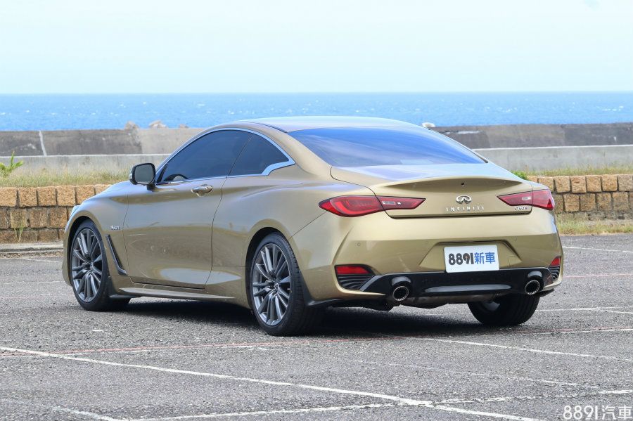 比起柔和的E-Class Coupe,Q60延續Q30之後的品牌風格,車身線條顯得較銳利、立體,加上選配價達27萬元的運動化外觀套件,包含水箱罩、側葉子板鰭片均為亮黑色處理,此外,車頭兩旁進氣口與後視鏡也改以碳纖維材質,比起常規配置又多了一絲殺氣,並採用類似香檳金的車色塗裝,實際視覺頗為顯眼。
