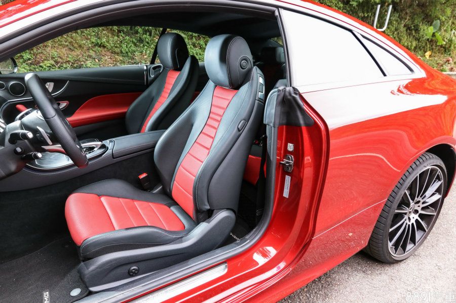 E400 4MATIC Coupe的AMG套件內含紅/黑內裝配色,搭配深色霧面的木紋飾板,沉穩不單調,基本架構和房車版相同,質感與科技感都有出色呈現,此外,E-Class Coupe的重點還有無B柱設計,這也能在高一階S-Class Coupe上見到,能有效降低後座乘客的壓迫感,並成為車型一大亮點。