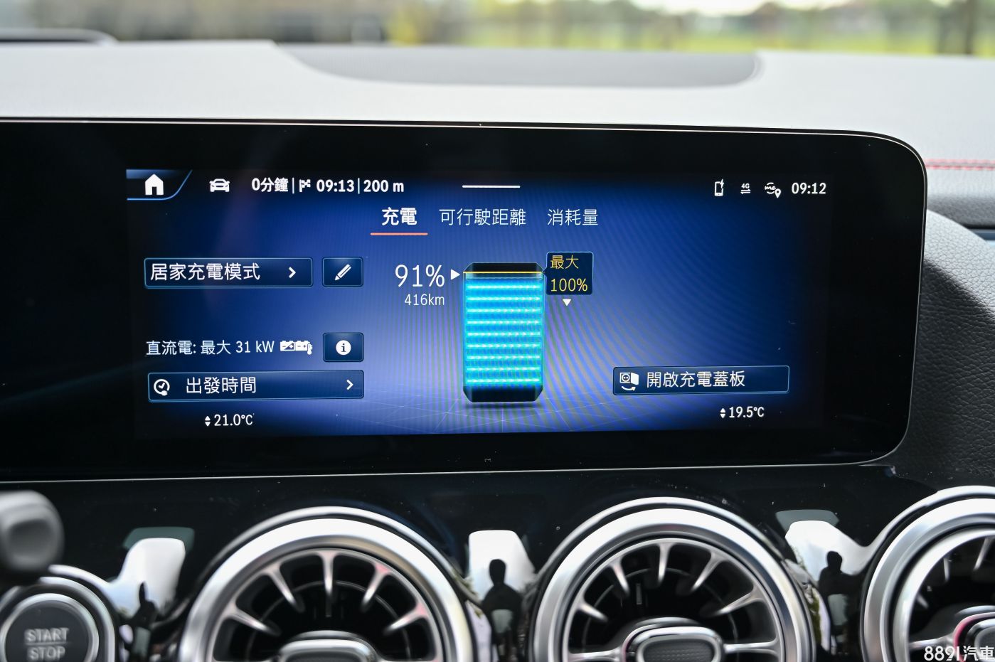 電動車相關資訊,如充電設定、能量流、電池消耗量等等,可從中控螢幕中的「EQ」介面點入查看或操作,除了標準、居家、公司三種充電模式能讓人預先設定好地點、充電%數等細項,還有個「出發時間」,讓車輛知道你的用車習慣,在出發前保持最佳電量狀態,此外小改款後也在面板上添加「開啟充電蓋板」的功能,雖說從車外輕壓蓋板也能開啟,但下車前按一下,也是能增添點儀式感。