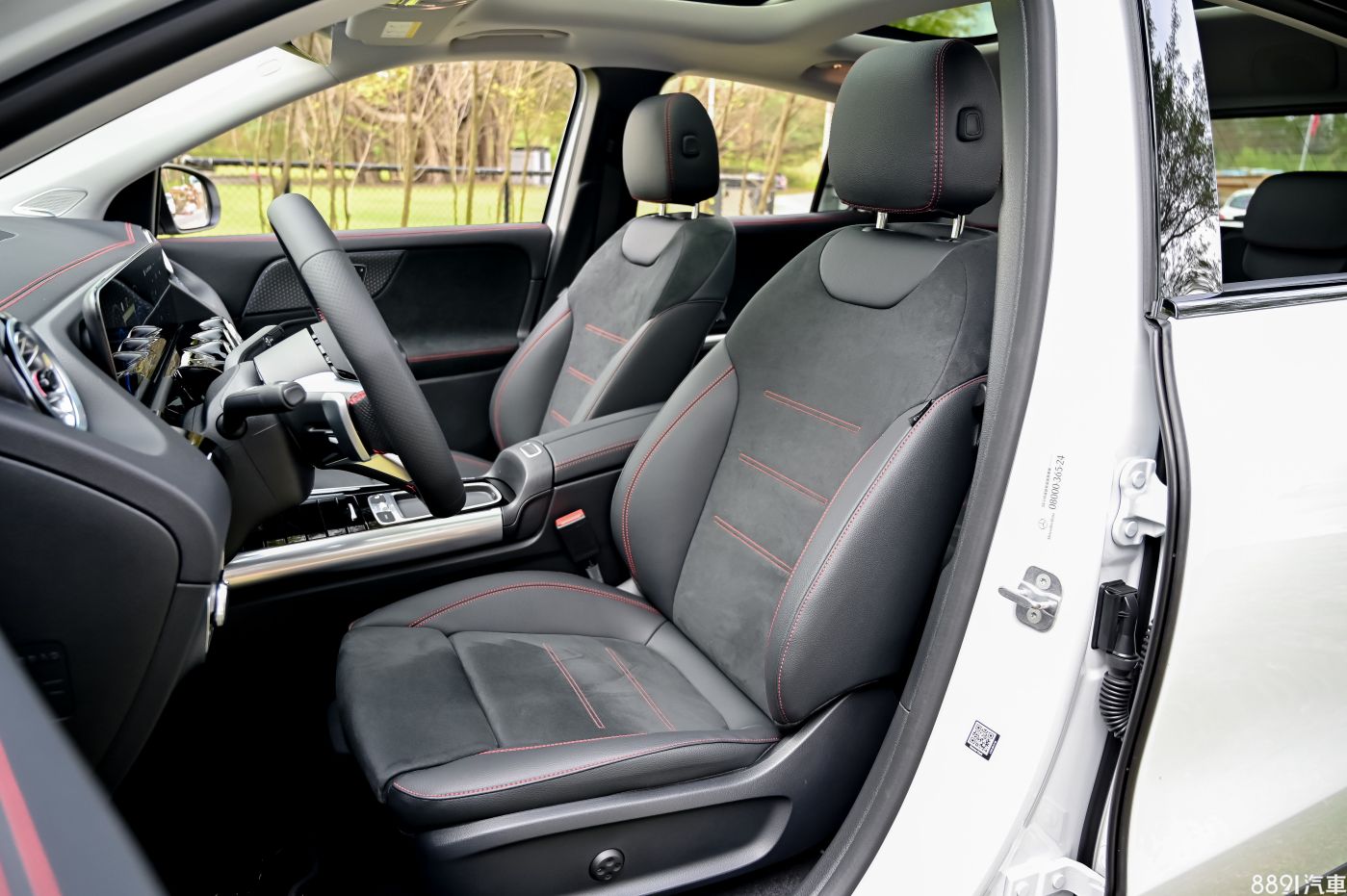 標配AMG Line套件的緣故,小改款EQA座椅也跟著從先前的「舒適型」換搭為「跑車型」,雖說名稱很運動化,椅面採用麂皮包覆+紅色縫線,視覺也很熱血,但乘坐感還是偏向放鬆舒服,如果是要激烈操駕下,腰部兩側的包覆性就顯得不夠了。正副駕駛皆具備電動調整、電動腰靠,腿靠也能手動延伸,不同身形的駕駛或乘客,要調整到適當的坐姿並不難,還有相當好用的記憶功能可一鍵切換。