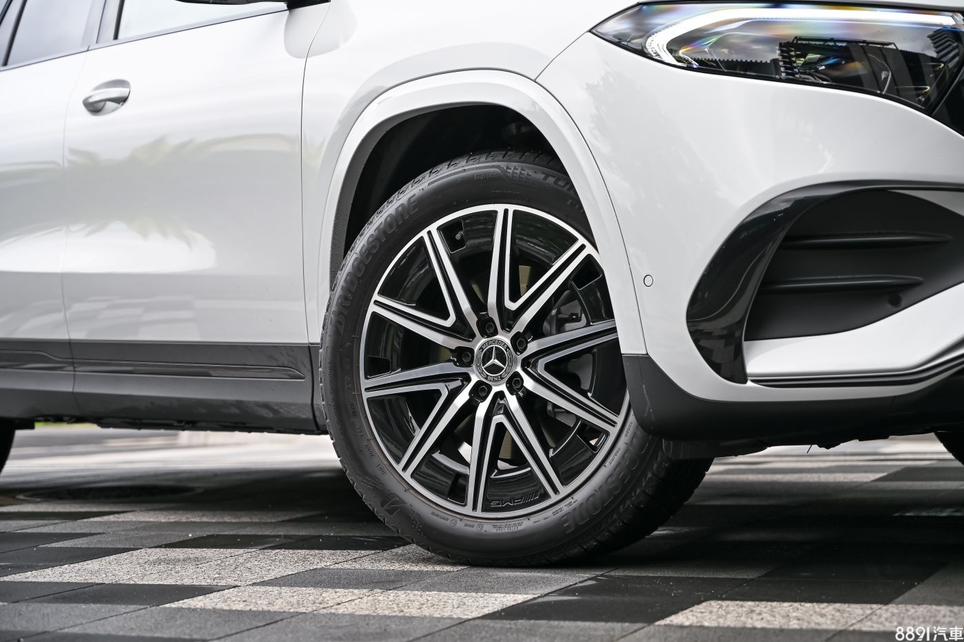 由於小改款EQA將AMG Line套件改為標配的關係,輪圈也自先前的18吋升級為19吋AMG多幅式鋁圈,內部加了黑色空力飾片,有助於降低風阻、增加續航里程,配胎為235/50R19普利司通Turanza T005 MO原廠認證胎,主打靜謐性與舒適度。