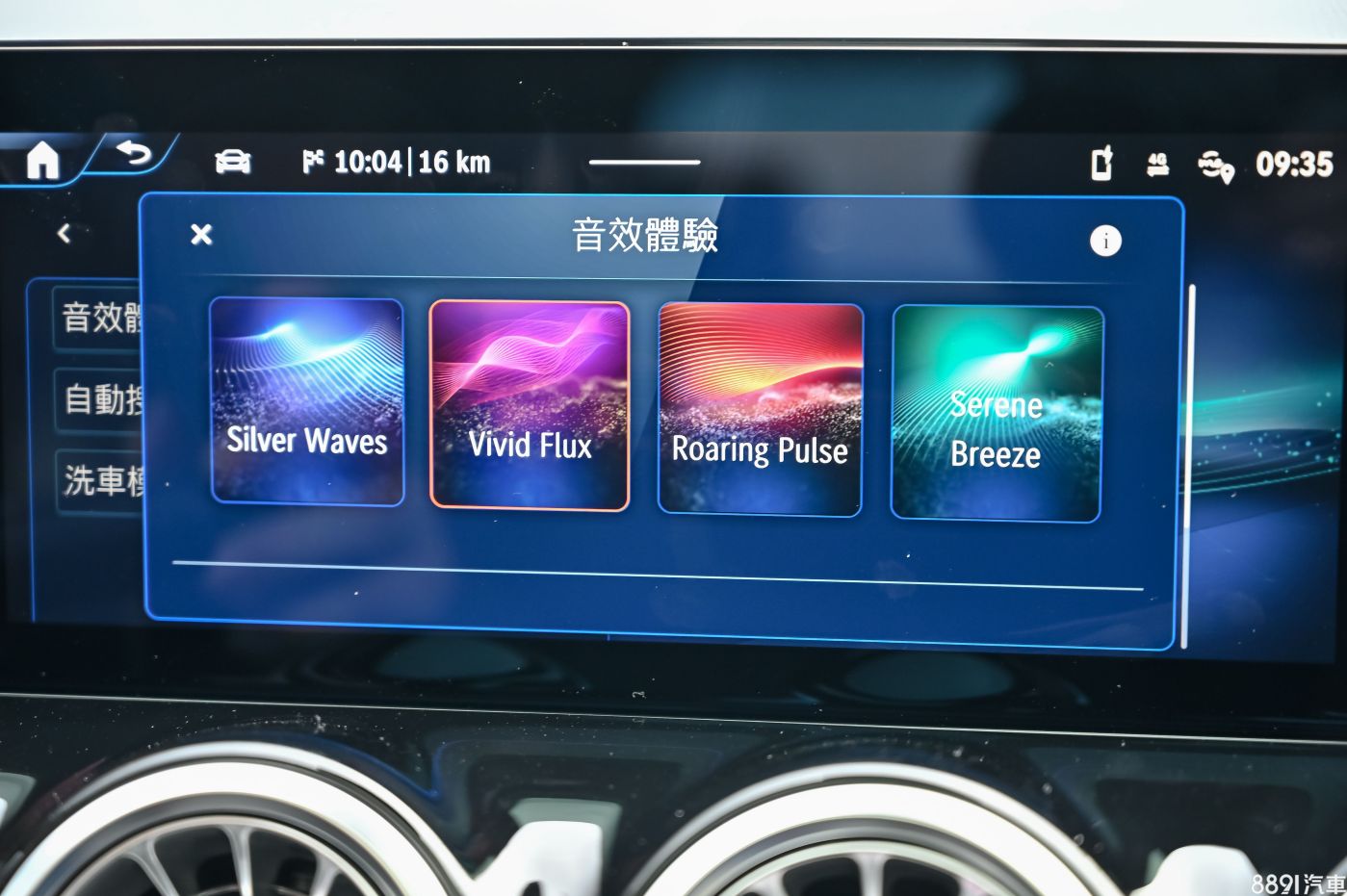 要說小改款EQA哪些升級最有感,我會首推Burmester音響,除了支援撥放Apple Music、Spotify等音樂串流平台的Dolby Atmos 杜比全景聲,帶來猶如「現場演唱」的視聽效果之外,最重要的是它導入EQ專屬音效系統,提供4種電動車模擬音效,會跟著電門踩踏深度適時加入音效,前3種比較偏向科技、未來感的電子音效,個人則偏愛「Serene Brezze」,類似微風吹佛伴隨著鳥鳴聲,讓人相當放鬆,當然如果你只想「安靜」,也可以手動關閉。