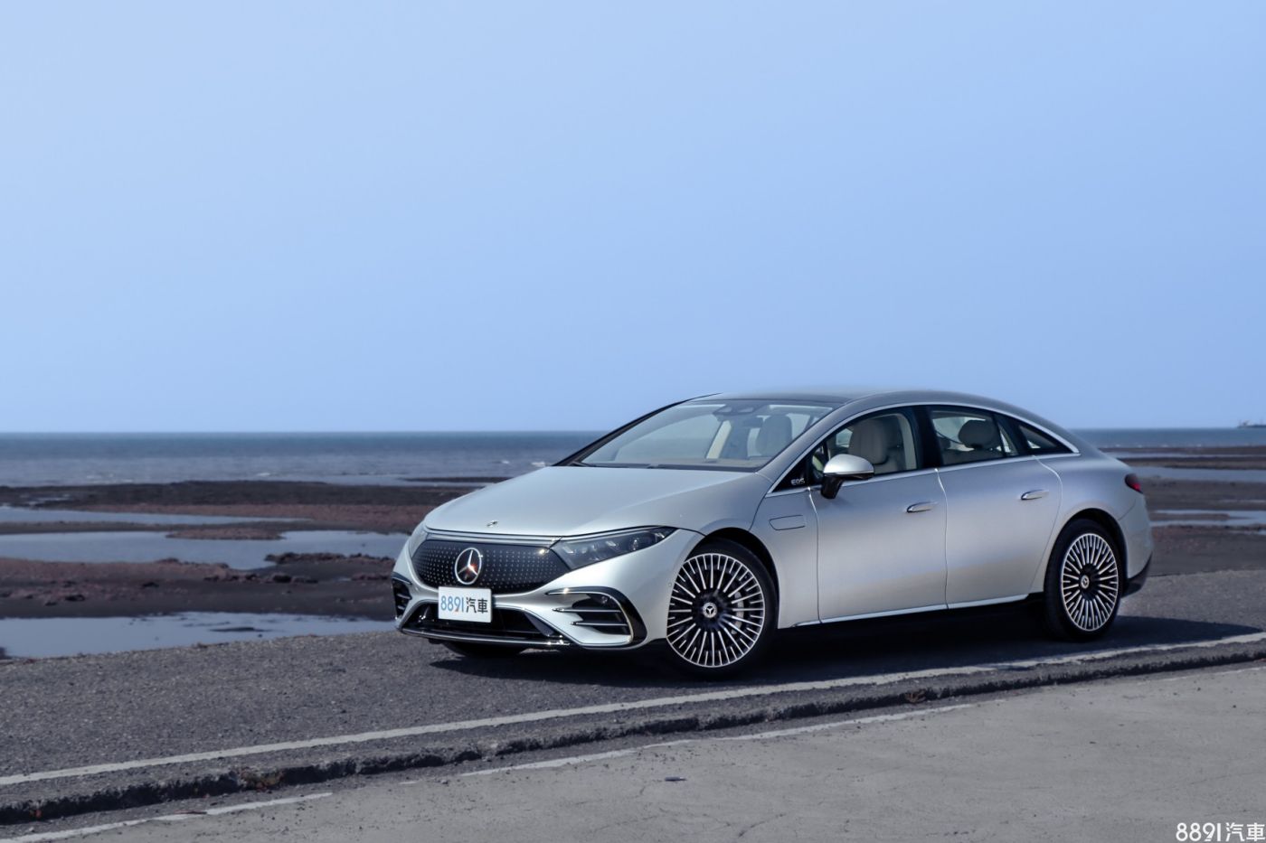 EQS擺脫過往賓士燃油車設計思維,圓潤且流線的車身線條,並且把外觀細節盡可能平滑化,用上平整的水箱護罩、隱藏式門把,擁有目前品牌最低的0.2Cd風阻係數,對於「省電」當然有幫助。頭尾LED燈組皆採用橫貫式燈條設計,科技感不在話下,功能性方面全車系標配多光束智慧頭燈,可依照天候、車速、路況自動調整照明,自動遠光燈照射範圍至多達650公尺。 EQS 450+ Pioneer標配20吋胎圈,試駕車選配21吋AMG鋁圈,看起來密密麻麻的多幅式造型,配上EQS頗有科技感。配胎為265/40R21的固特異Eagle F1 Asymmetric 5原廠OE胎,主要講求抓地力表現,一般路上開舒適性不差,路噪也控制得不錯。