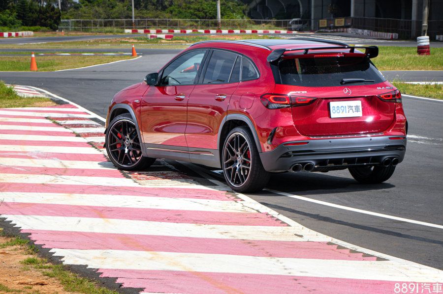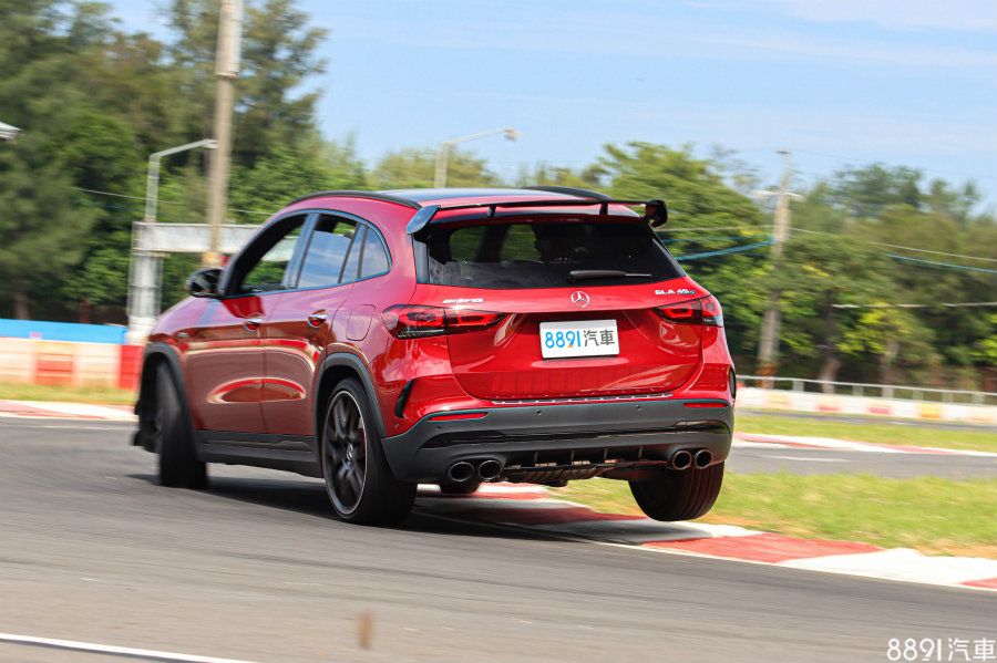 撇除出彎油門應對太粗暴所產生的偏滑,若單純討論車尾動態,GLA 45 S 4Matic+比A 45 S 4Matic+來得安定一點,之前A 45 S 4Matic+進行超級測試時(A 45 S 4Matic+超級測試連結),只要稍微刻意做重心擺動(例如刻意猛轉方向盤,或是左右搖擺破壞車身平衡),A 45 S 4Matic+車尾就會蠢蠢欲動,GLA 45 S 4Matic+則較為安定,不會因為重心比較高,就變得更不安穩。