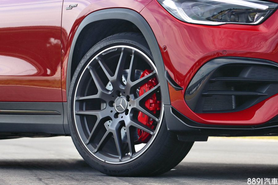 原廠標配20吋鋁圈,試駕車選配了21吋多爪式AMG鋁圈(選配價6.3萬),配胎也從255/40R20升級為255/35R21的馬牌CSC6跑胎,抓地表現優秀之餘,低扁平比也賦予相當清晰的路感,操駕起來也罩得住400hp性能大鋼砲!跑得快也得煞得住,45 S車型標配前六活塞+350mm碟盤、後單活塞+330mm碟盤煞車系統,制動力道線性好控制,紅色塗裝也不錯看!
