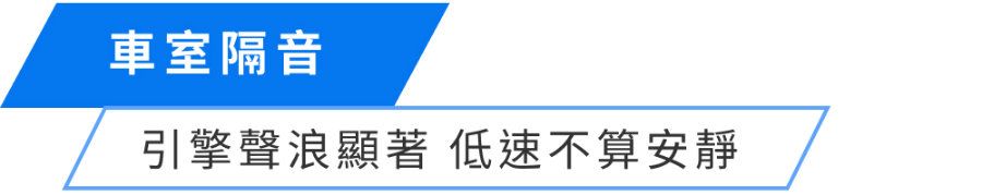 GLA 45 S定位偏重性能取向,引擎聲浪幾乎在任何轉速都清晰可聞,即使Comfort模式、怠速時仍隱隱約約傳來引擎運轉聲,這讓怠速噪音來到44.1dB,以豪華品牌來說並不算安靜。行進間輪胎噪音、風切聲雖然都抑制在合理範圍內,排氣聲卻如背景音一般如影隨行,十足熱血設定。
