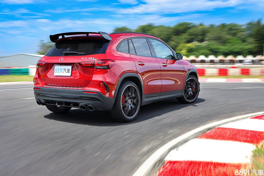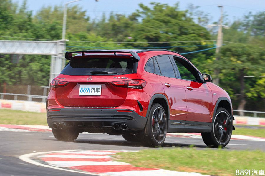 即便是AMG性能一軍車型,還有大尺碼鋁圈加持,但GLA 45 S從低角度看去,仍是標準的小休旅姿態,身形圓潤、底盤離地也高,所幸四出尾管聲浪夠嘹亮,路上稍微股催一下就很有存在感,休旅歸休旅,開上路仍是不折不扣的AMG,性能氛圍很到位!