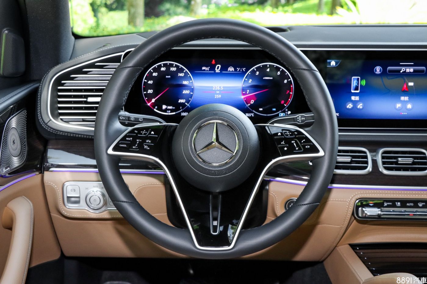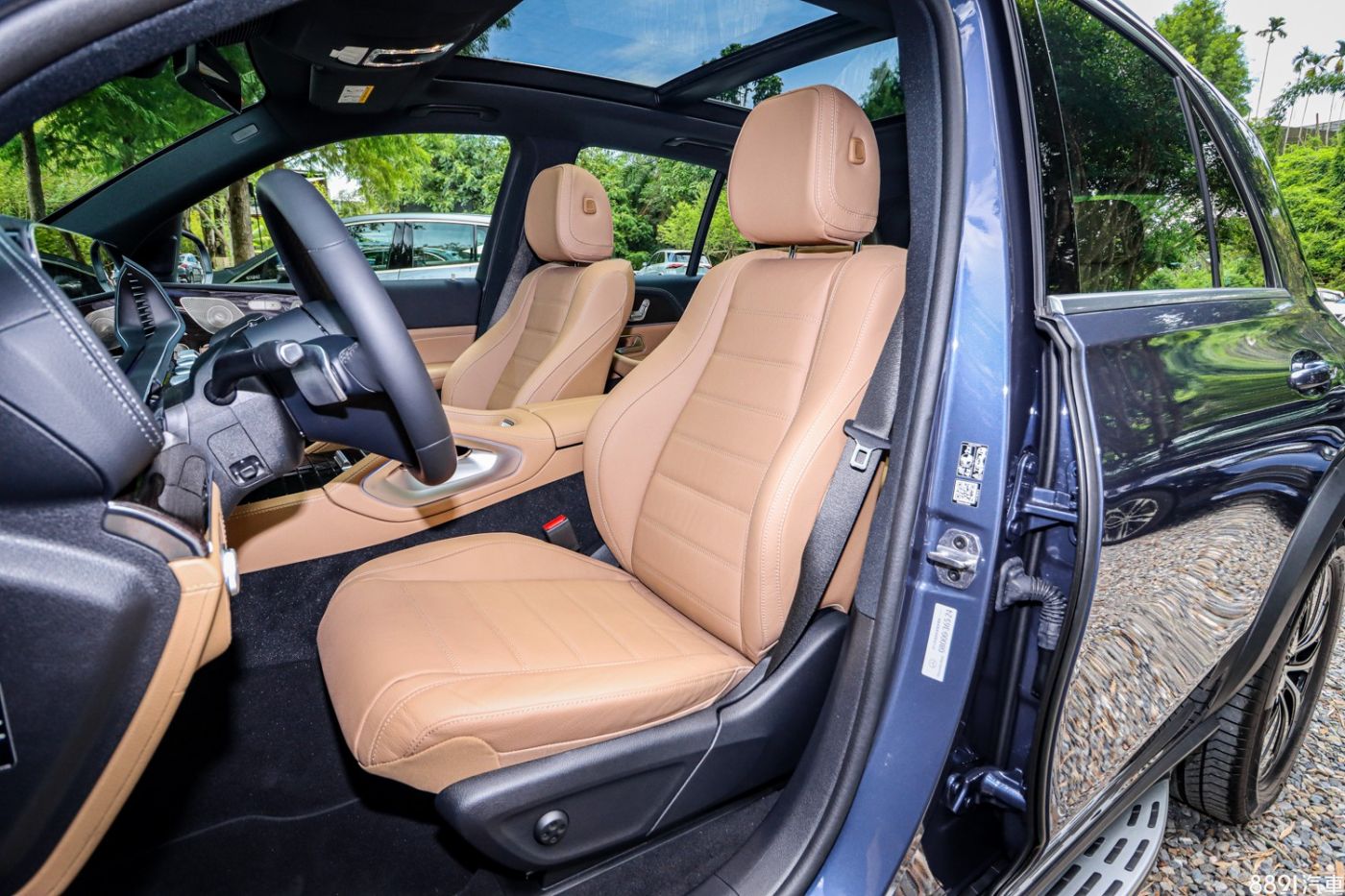 小改款GLE內裝架構相仿,但換上新款式方向盤,在儀表台、螢幕後方的隔柵飾條改用金屬材質,讓原本質感就不錯的內裝畫龍點睛。試駕車有選淺棕色真皮內裝,選配價10.1萬元,我個人還蠻喜歡的,車室看起來更明亮。