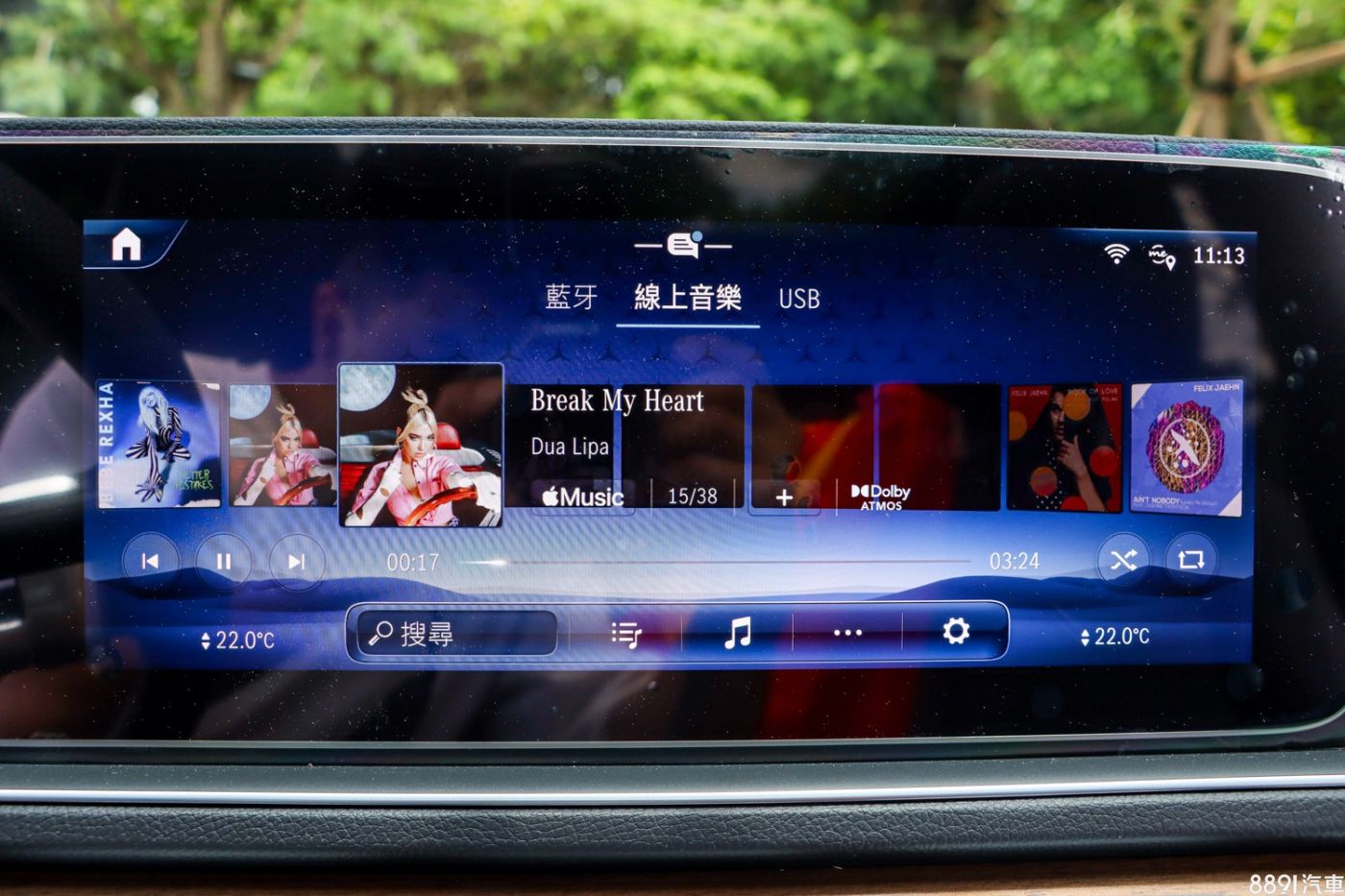 450以上車型標配Burmester環繞音響系統,具備13支揚聲器,這次小改款加入了Dolby Atmos杜比全景聲效果,在多音軌技術支援下,高、中、低音頻切割更清楚,聲音像是從四面八方傳來,聽起來很震撼,臨場感十足,但該功能目前僅支援Apple Music線上音樂,得搭配MBUX線上音樂服務,且要看到標示Dolby Atmos的歌曲才有效果。