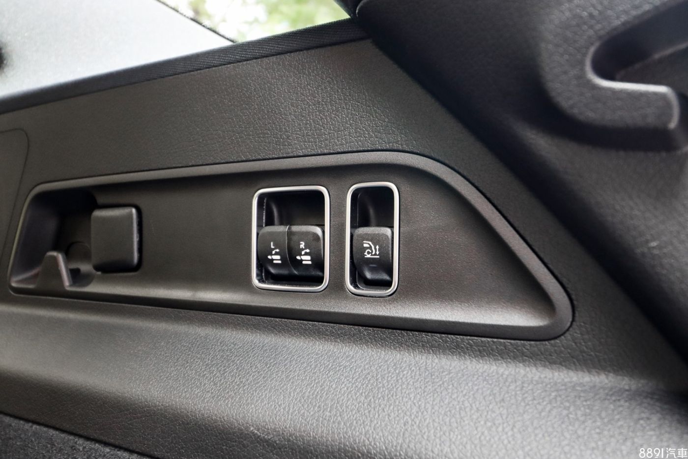 試駕車有選配後座電動調整(7.6萬)與氣壓懸吊(10.8萬),所以會有後座椅背電動收折、以及單獨降低車尾高度,讓擺放物品更輕鬆的快捷按鈕。