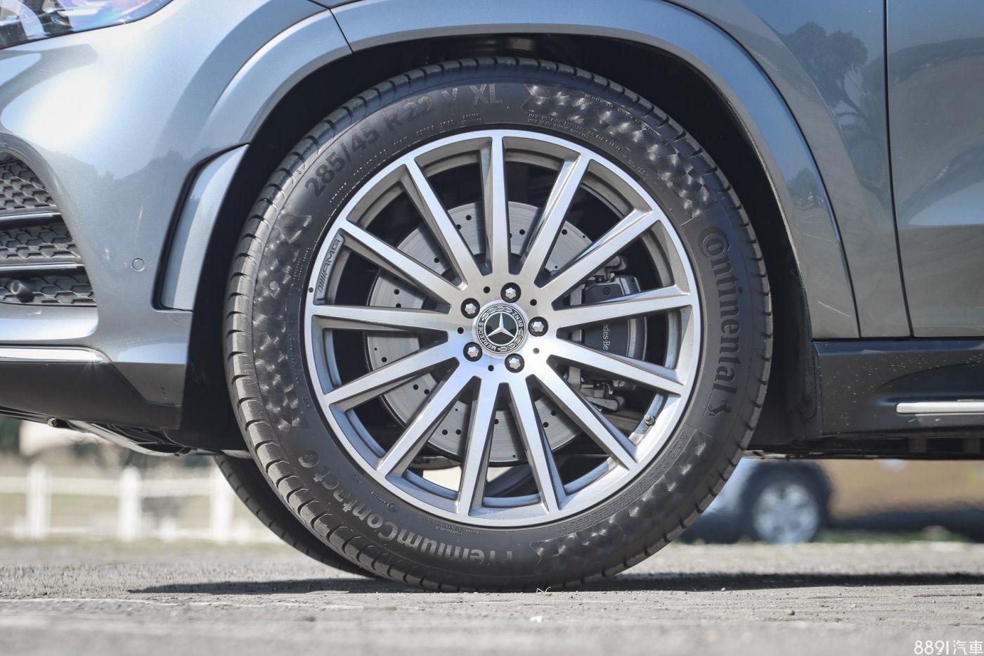 原廠標配21吋輪圈,試駕車另加價7.3萬選配了22吋AMG多輻式輪圈,視覺效果更霸氣,搭配前285/45R22、後325/40R22的馬牌PremiumContact 6舒適胎,巨大接地面積提供更好的循跡性。