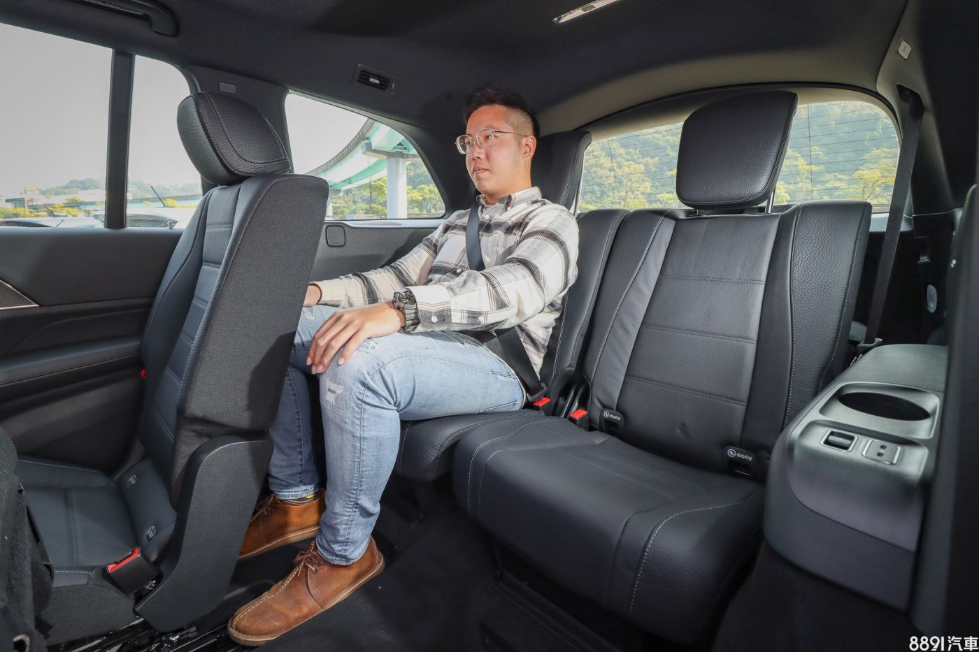標配七人座第三排空間,雖然不及第二排寬敞,但以174cm成人來說只需將第二排座椅向前調整一些就可獲得足夠的空間,搭配第三排獨立的恆溫空調系統、Type-C插座與置杯架,便利舒適性依舊非常完整。