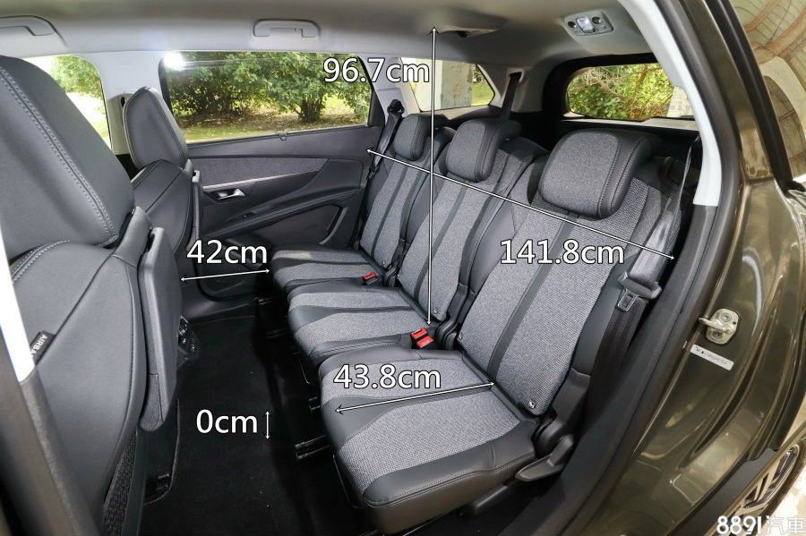 5008也許在台灣較冷門,但42cm的膝部空間相當驚人,再加上地板為全平面無隆起,後座空間可用優秀來形容,雖然上圖是小改款前車型,目前小改款5008尚未參與超級測試,但小改款後並未針對車身尺碼與內裝進行大幅度變化,因此空間表現預期也是相當亮眼。