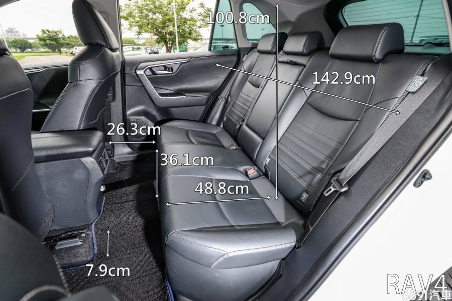 雖然在第2排寬度數據不敵CR-V,但RAV4在車室高度的部份倒是扳回一城,100.8cm的成績比CR-V的95cm、Kuga的90.8cm都出色許多,有更好的頭部空間讓乘坐不會有壓迫感,也是榜單中唯一的中型休旅。