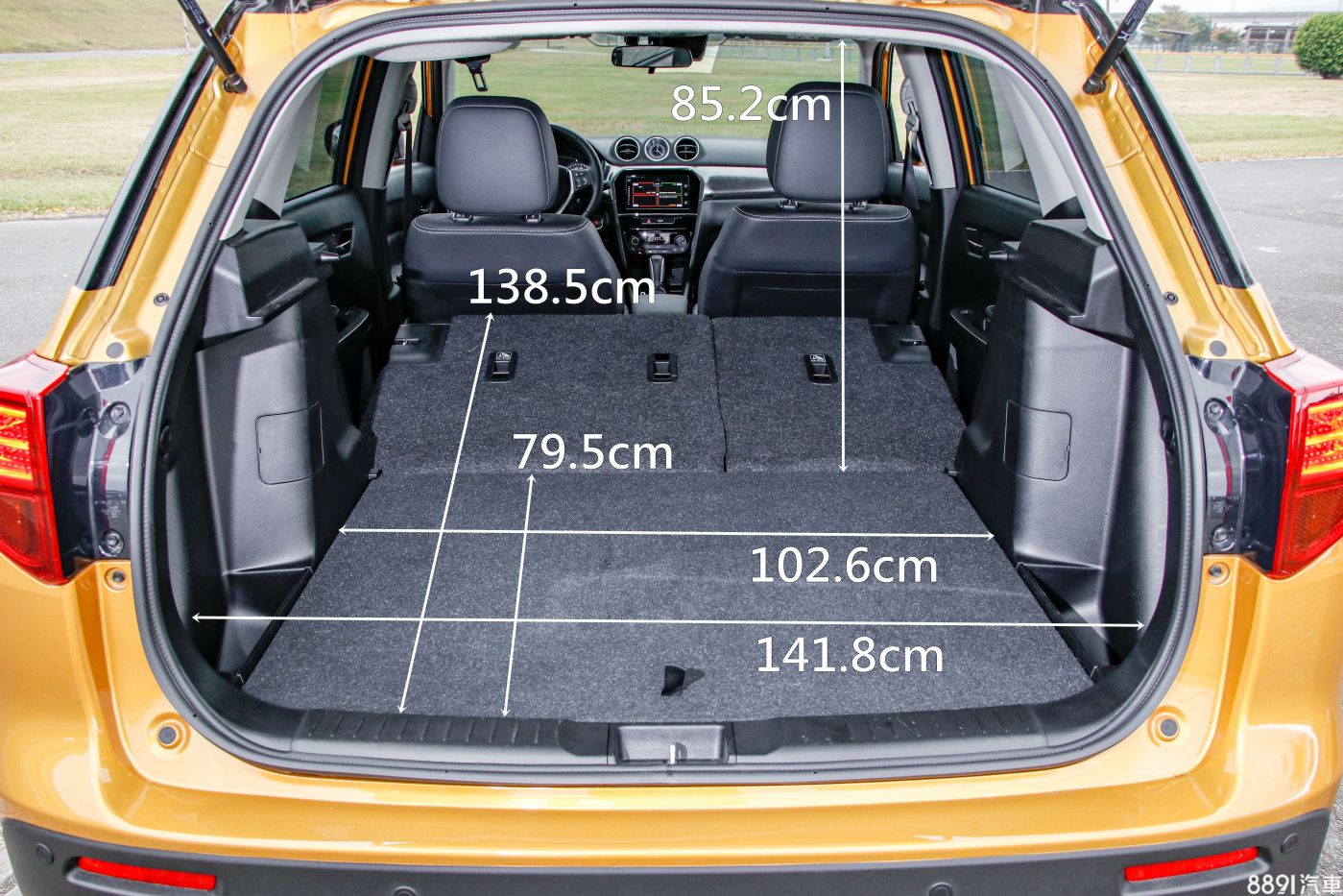 Vitara以141.8cm的行李廂寬度一舉奪下第2名,是榜單中最驚奇的車款,這寬度幾乎已與Alphard平起平坐,這可是一輛車長不過4米出頭、車寬也才1775mm的小休旅,雖然深度表現一般,但廂內空間方正、後座放倒後也無斷差,置物表現相當優異。
