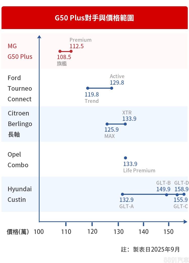 G50 Plus入手價格在「百萬出頭」,整體比歐系MPV低了不少,對比主打高級家用的韓系Custin,門檻更低了24萬,以七人座空間+全速域ACC+雙12.3吋+360環景為配備基準點來看,G50 Plus用108.5萬價格全都包了,而且入手價更親民,再次凸顯了旗艦版的高性價比。