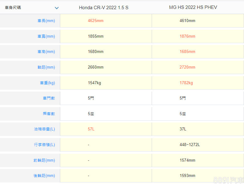 兩者車身尺碼相去不遠,HS頂規由於搭載PHEV動力,車重領先也是正常發揮,值得一提的是,雖說HS軸距較CR-V大,但乘坐體感上同樣寬裕,實際測量數據可能得等我們進行超級測試後見分曉。
