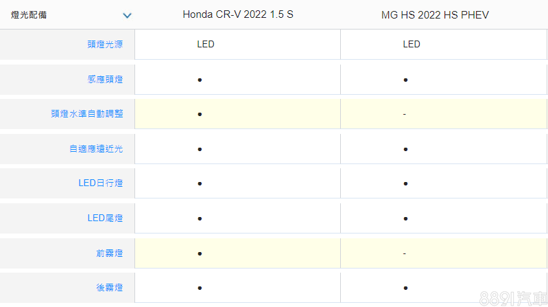 在兩車都採LED光源設定的前提下,要比的自然是燈組科技,CR-V多了水平自動調整,另HS也無前霧燈之配置。