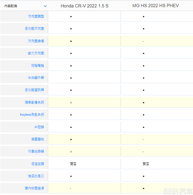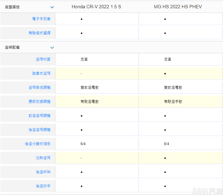 HS雖然比起CR-V多出跑車化座椅和雙前座加熱功能,但實用性相對較小,整體而言兩車頂規配置依舊不相上下。