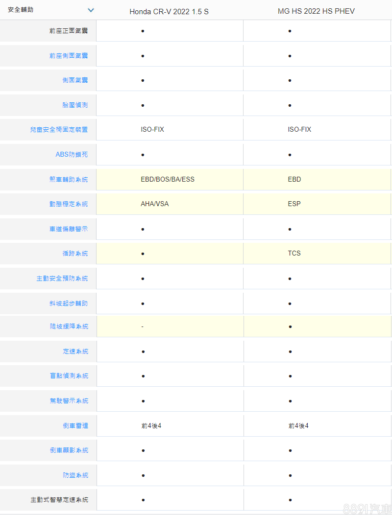 無論是HS還是CR-V,安全輔助科技方面都十分完善,也符合現下消費者的需求,不過再看細一點,HS還是多了陡坡緩降、後方交通警示、開門防撞警示等。