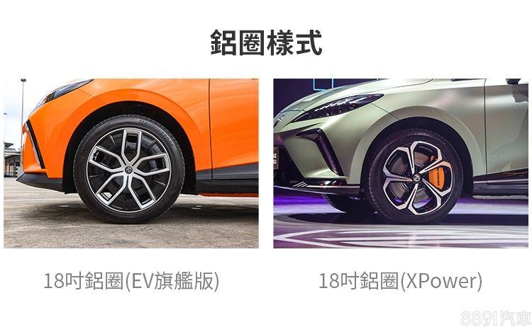 兩等級都搭載18吋鋁圈,入門款走樸素路線,採用Y型五幅造型,外加黑色的平整化整流蓋,而XPower版本則為雙色切削鑽石造型,並升級專屬橘色煞車卡鉗,視覺上更搶眼。