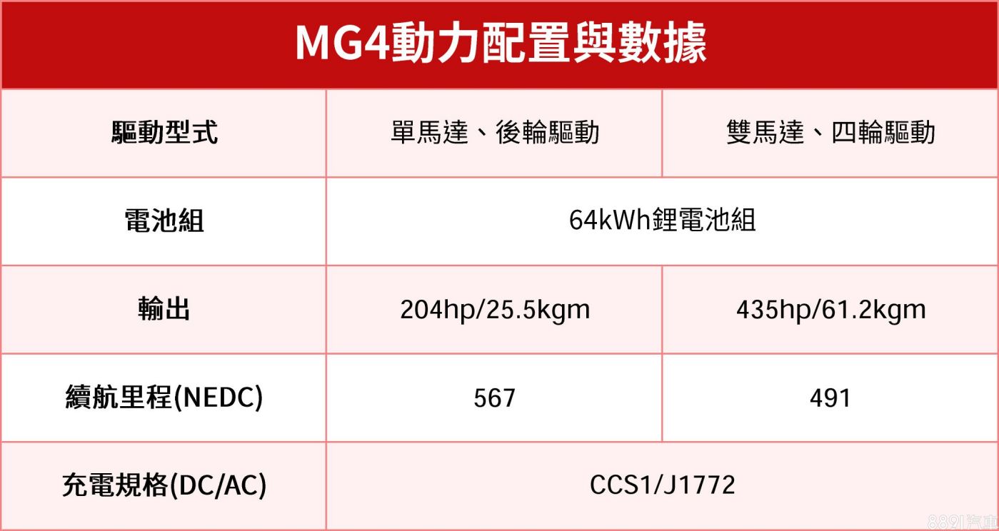 充電規格採J1772慢充與CCS1快充,直流充電功率最高支援140kW,原廠稱電量10%回充至80%,約需花費26分鐘,能源局公布續航里程分別為567km與491km,兩者差距76km,大概是台北到新竹的單趟距離,不過MG4採用NEDC測試標準,而非更貼近日常使用情境的WLTP,因此官方數據參考就好,實際續航力還要打折。