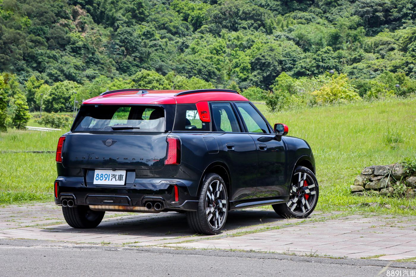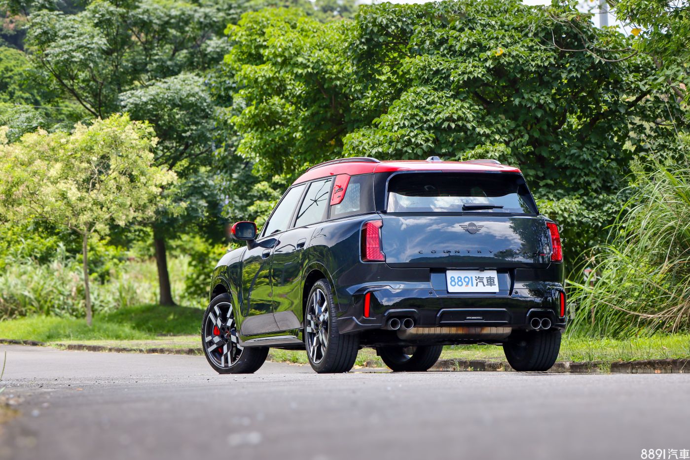 車尾則能見到經過黑化的廠徽與Countryman銘牌,下方則是JCW專屬的雙邊四出排氣管,是實實在在的排氣管!不過相比車頭,車尾的整體造型總覺得有些憋扭,尾燈面積如果再大點可能會更好~