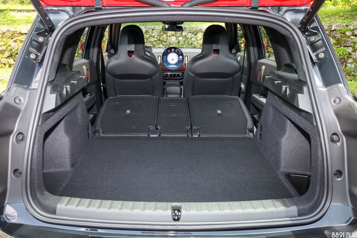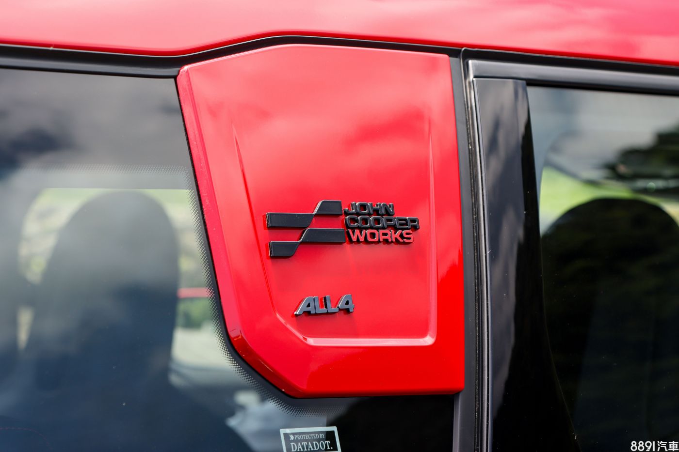 C柱後方的飾板,是新一代Countryman的小巧思,上頭的設計會隨著不同車型變化,在JCW上面自然就是大喇喇的秀出身份象徵,方格旗的圖案一直是JCW的身份識別,以後應該會有不少改裝品可以讓車主在這發揮創意。