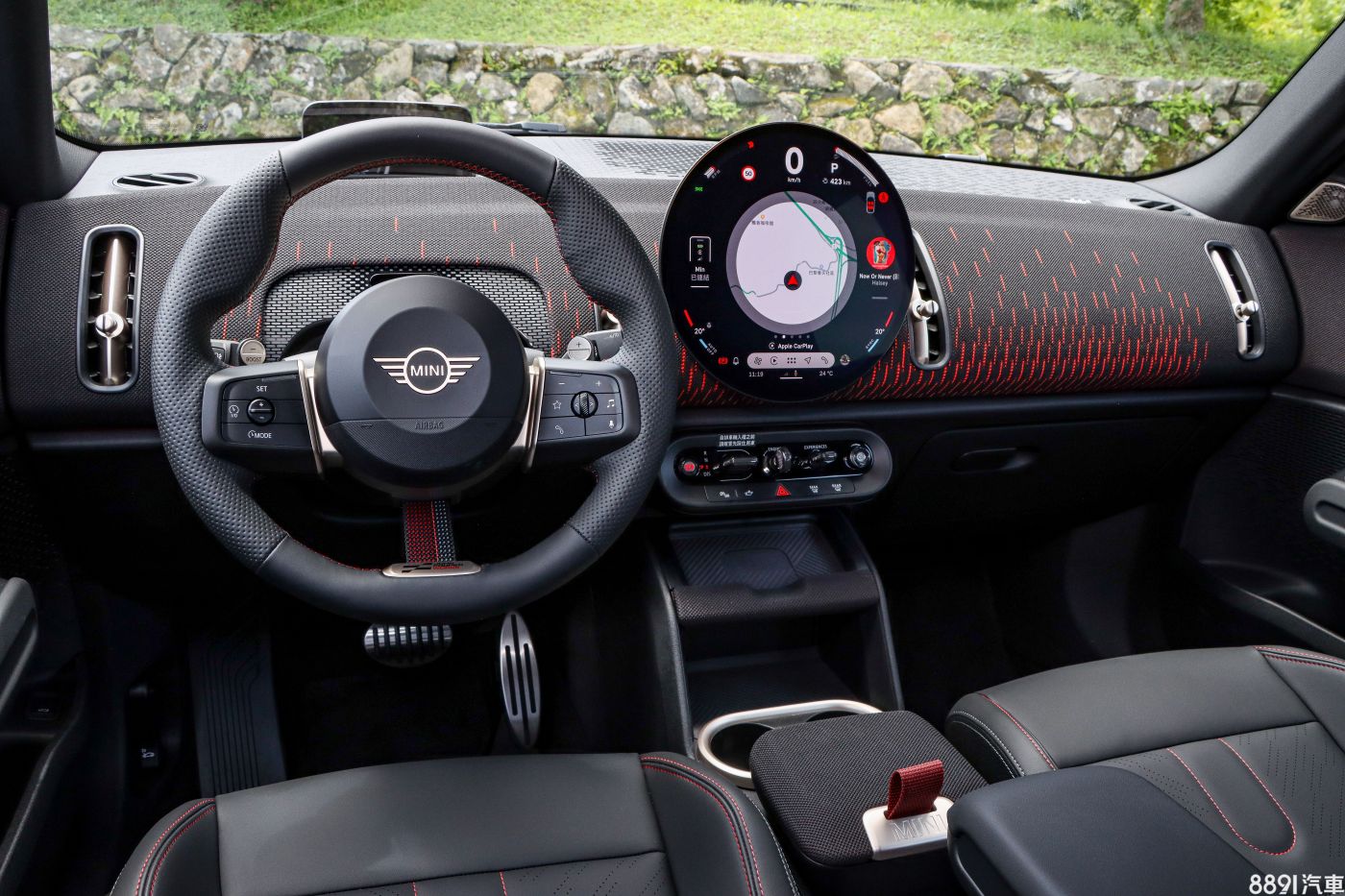 接觸過這麼多簡潔化內裝,Countryman大概是我最喜歡、最能接受的,取消了儀錶板、實體排檔與多數按鍵,但一點也不會讓人覺得是「硬要」,而是透過經典的設計元素,與新世代科技加以融合,隨著JCW版本,也換上紅色為主題的鋪陳,動感氣息更濃。