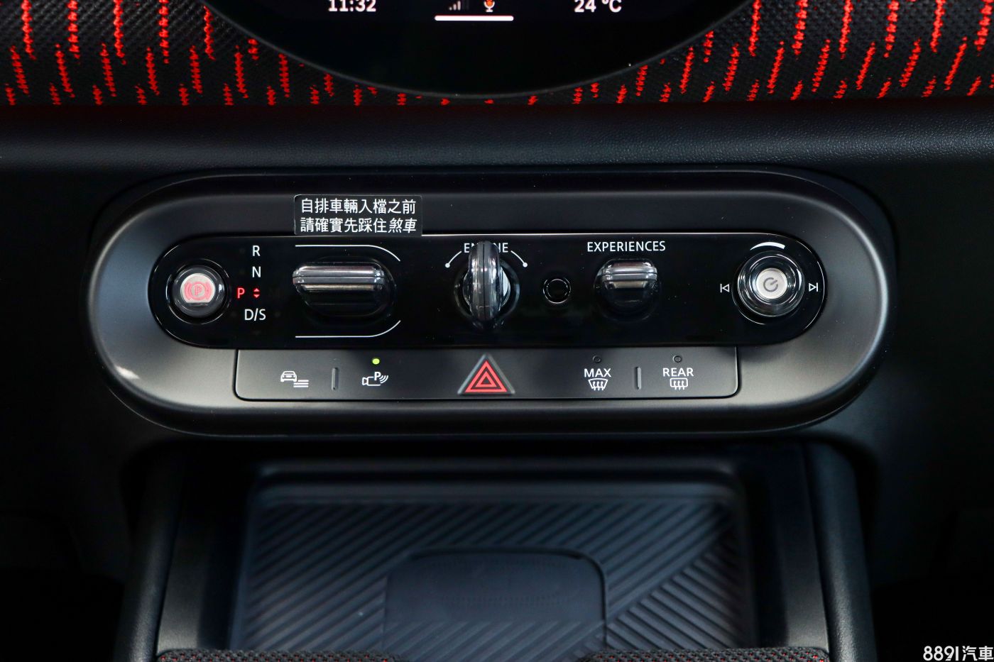 下方按鍵區則傳承了經典Mini的設計精髓,配置了五個常用按鈕與撥桿,由左至右分別是電子手煞車、排檔桿、引擎啟動、Experience體驗模式以及多媒體音量。