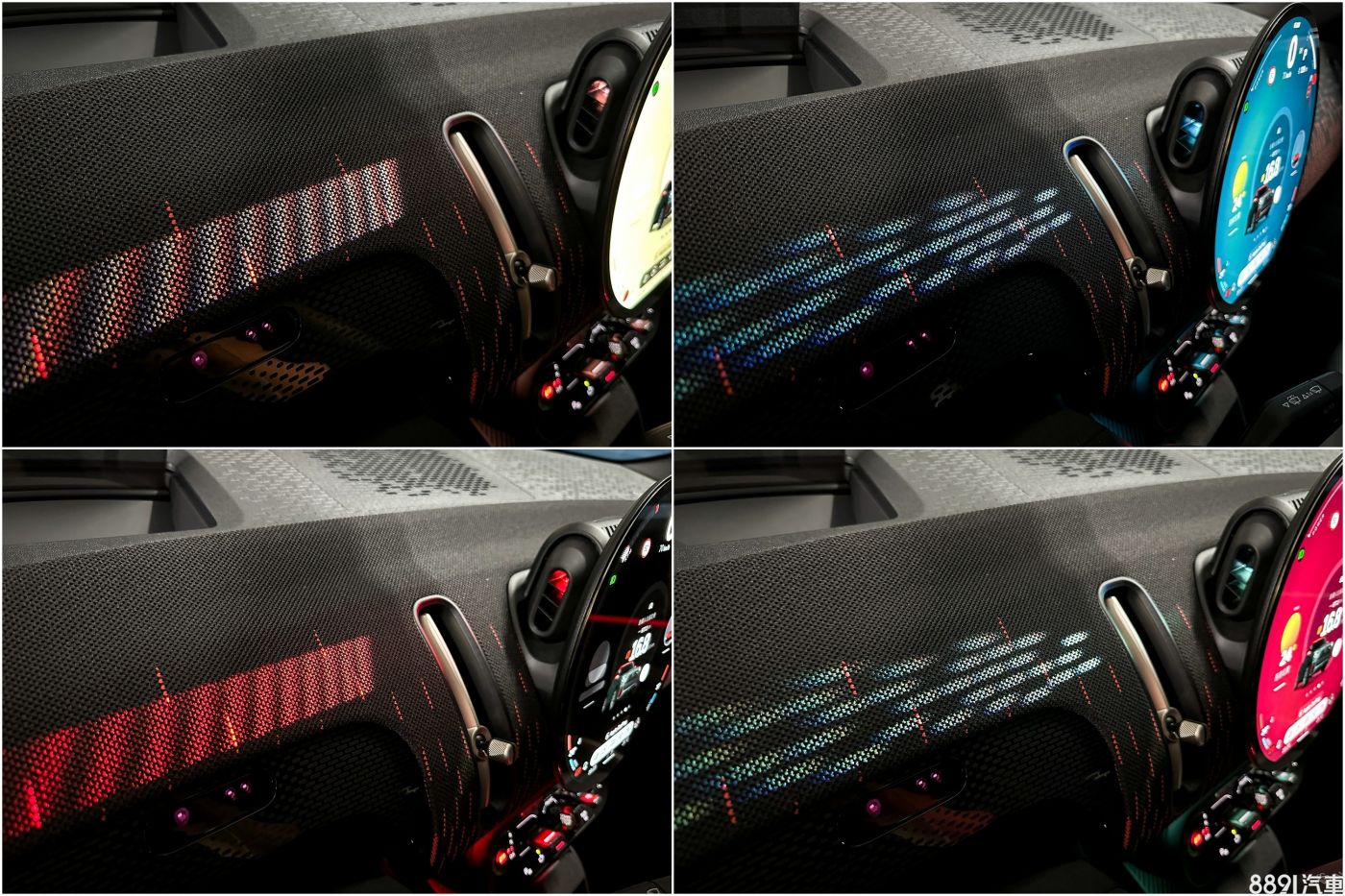 儀表台上的氣氛燈很特別,不是常見的內嵌式,而是透過中控螢幕後方「投射」,可以隨著座艙模式改變之外,也能自訂自己喜歡的顯示圖樣與顏色,不過這在白天幾乎看不到,主場還是在晚上。