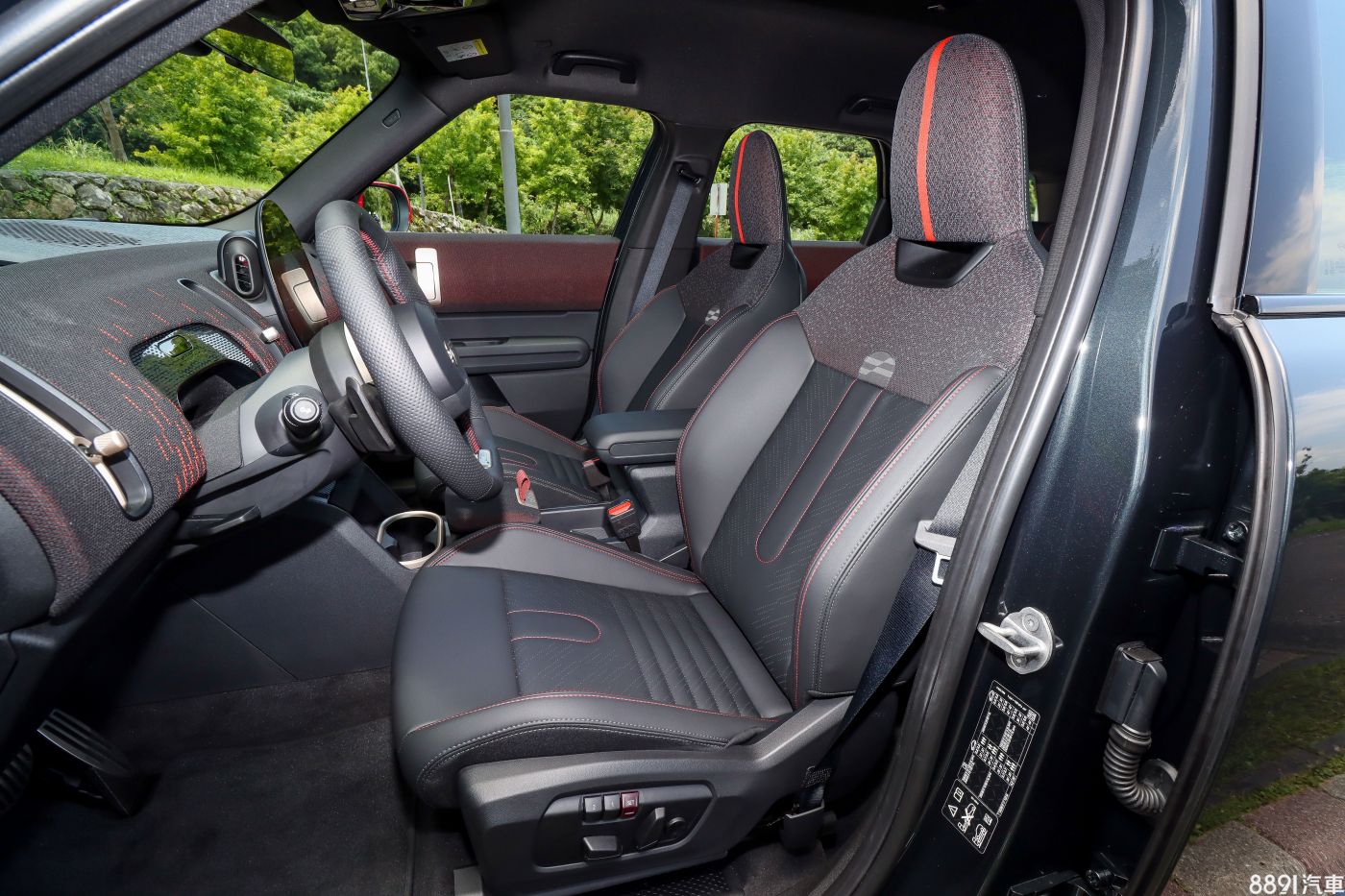座椅採JCW專屬的跑車化設計,表面以Vescin/Cord純素皮革搭配織布,質感不輸真皮,包覆性也有不錯表現,搭配雙前座電動調整、駕駛座按摩功能,便利性比前代強上不少,美中不足的是腿部椅面沒有向前延伸的設計。